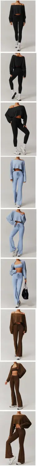 2PCS Women Tracksuit Yoga Set Workout Clothes - Huacha Brown 4 / M / CHINA