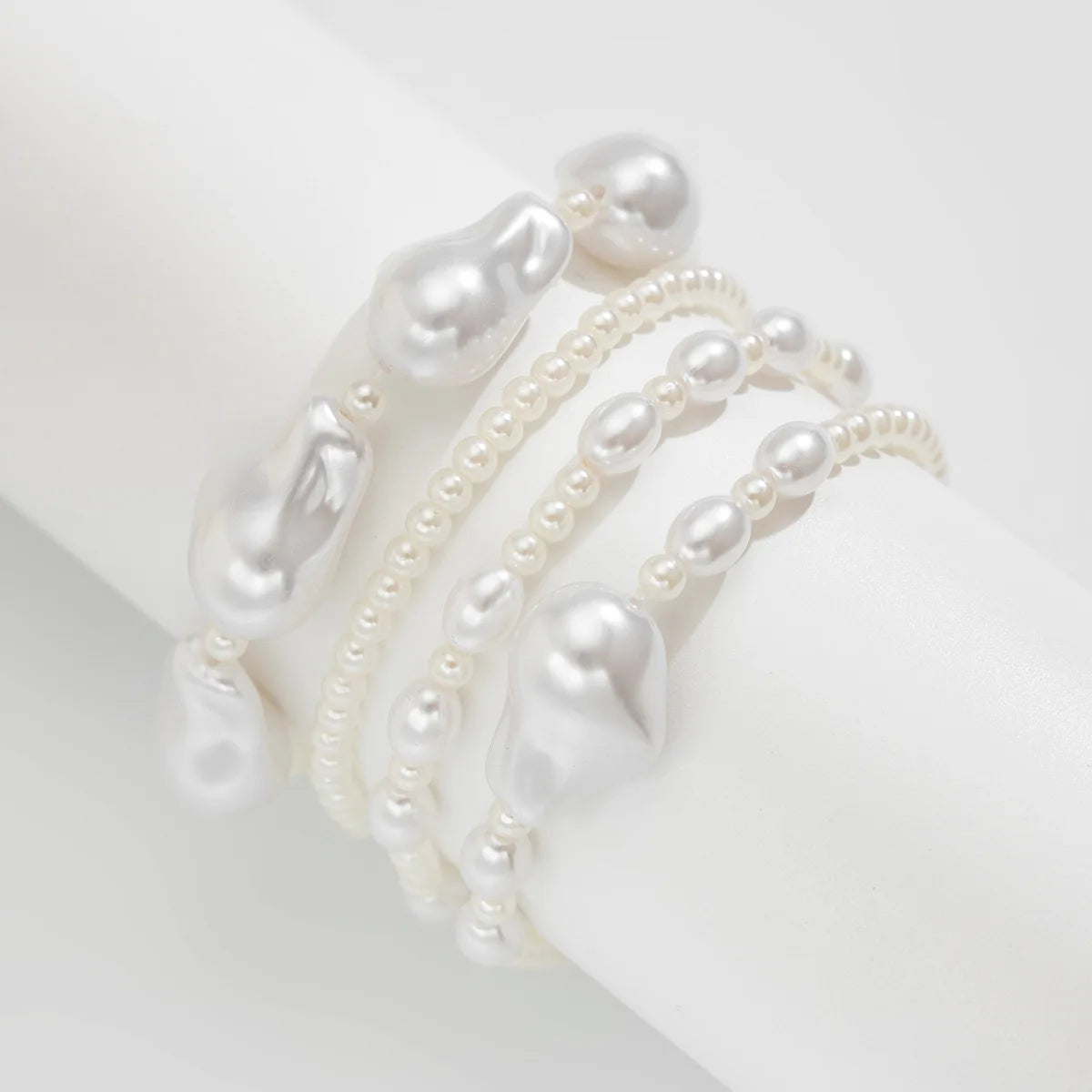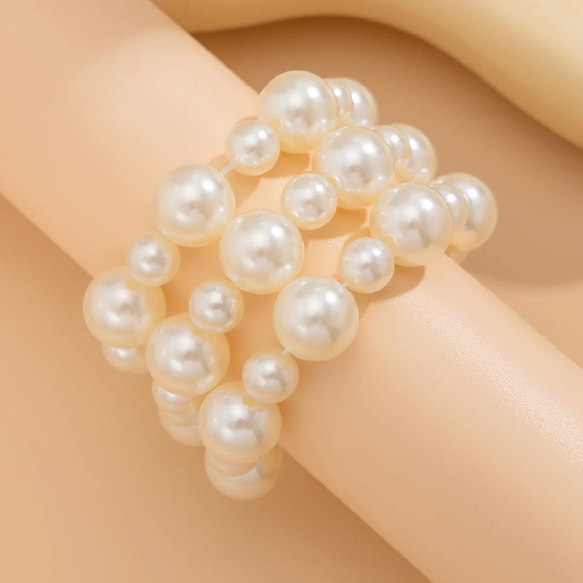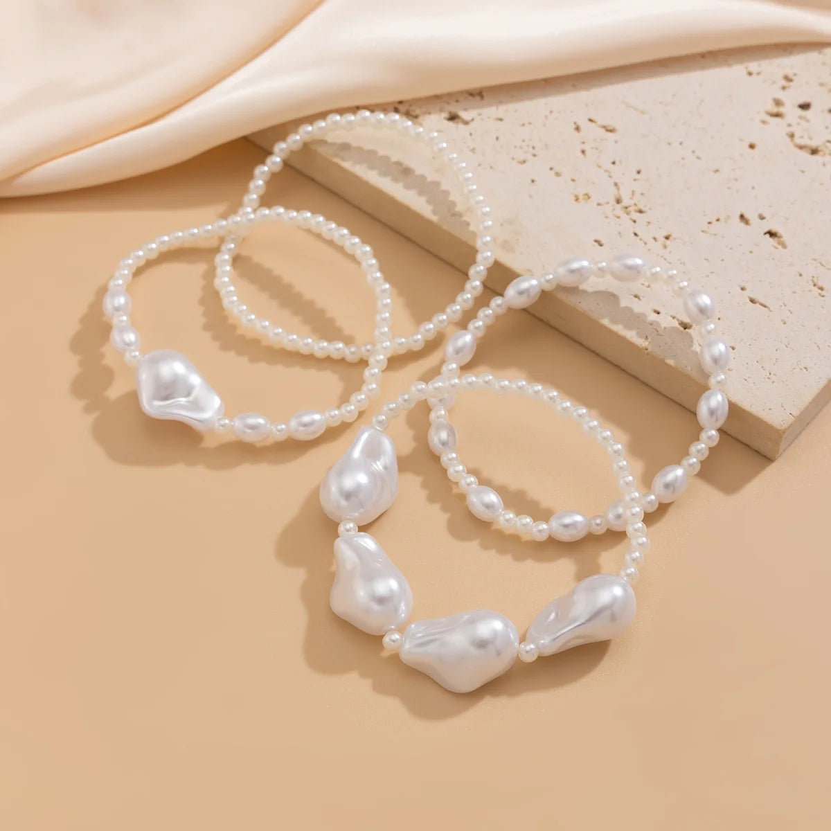 3PCS Punk Stretch Beads Bracelets - 5605 Silver