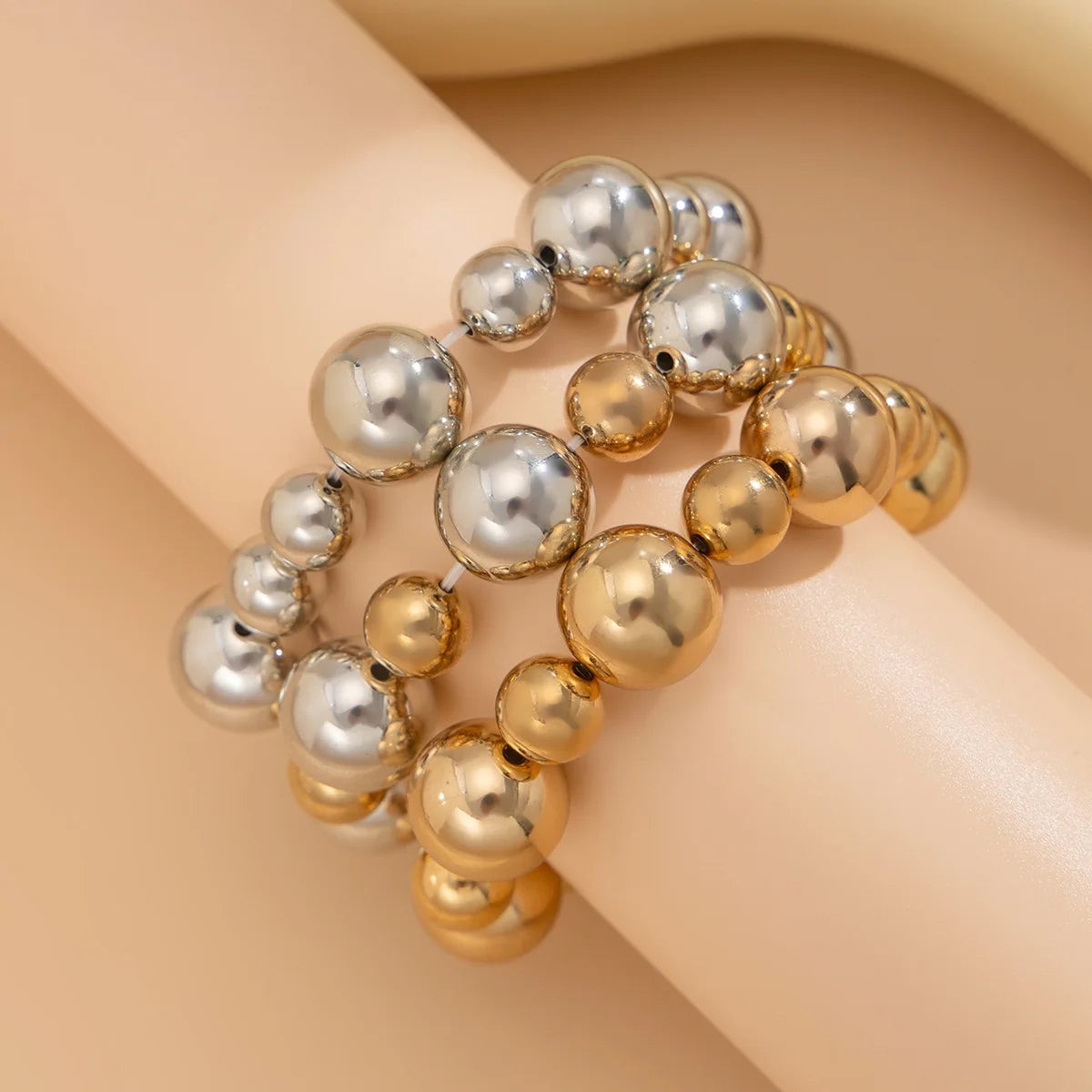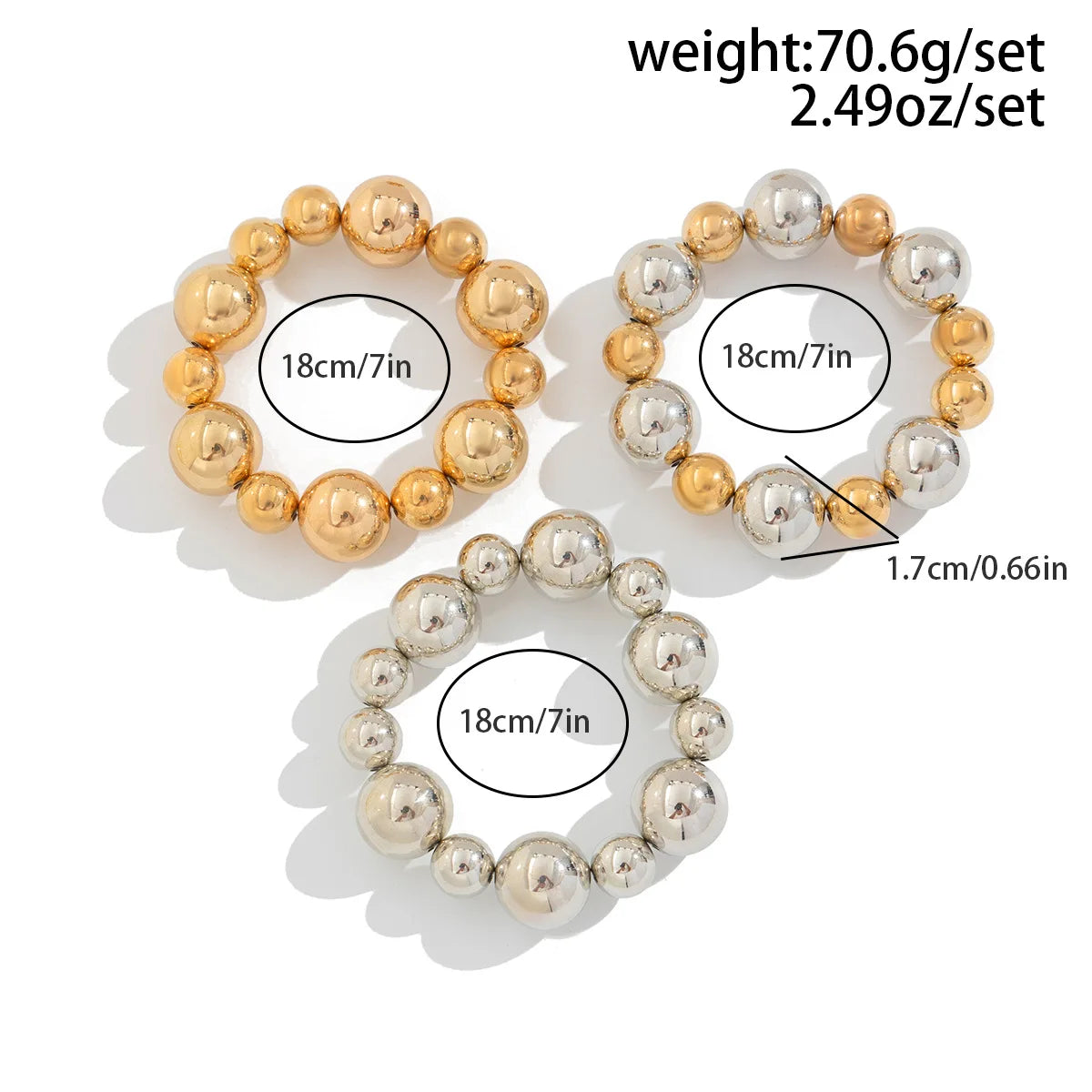 3PCS Punk Stretch Beads Bracelets - 5605 Gold Silver