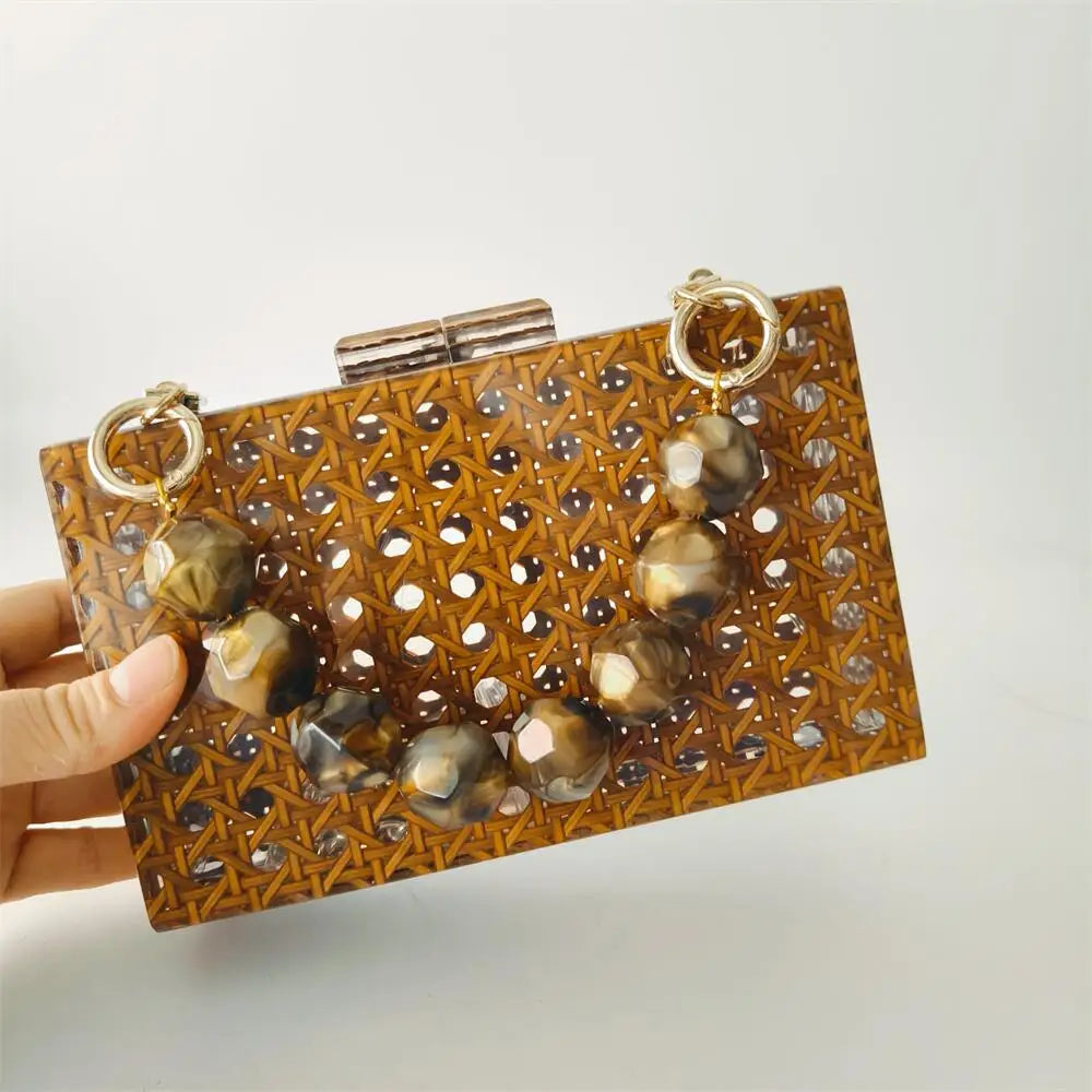 Acrylic Egg Cane Rattan Clutch Bag - o shape chain 1