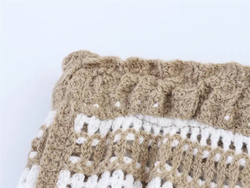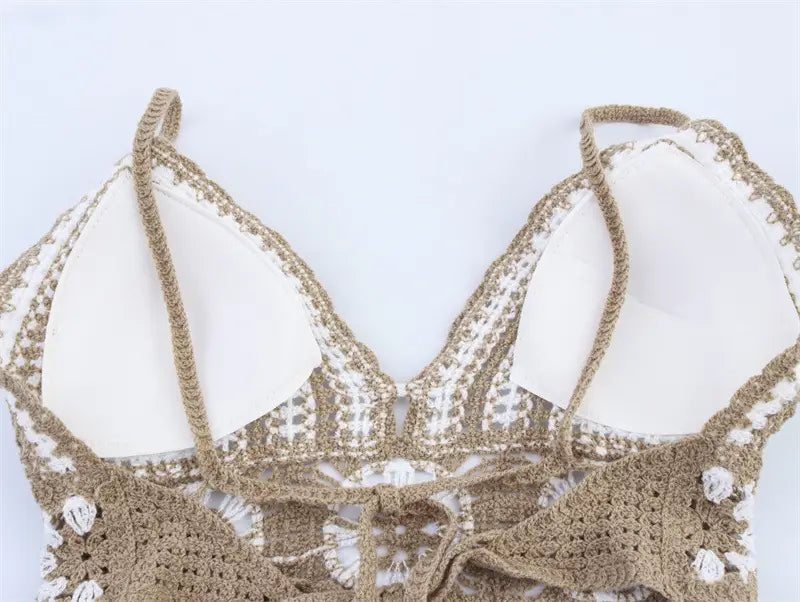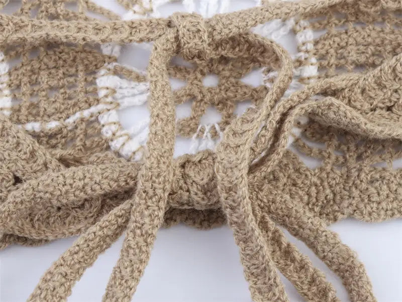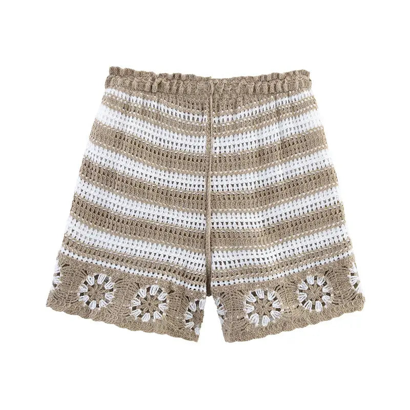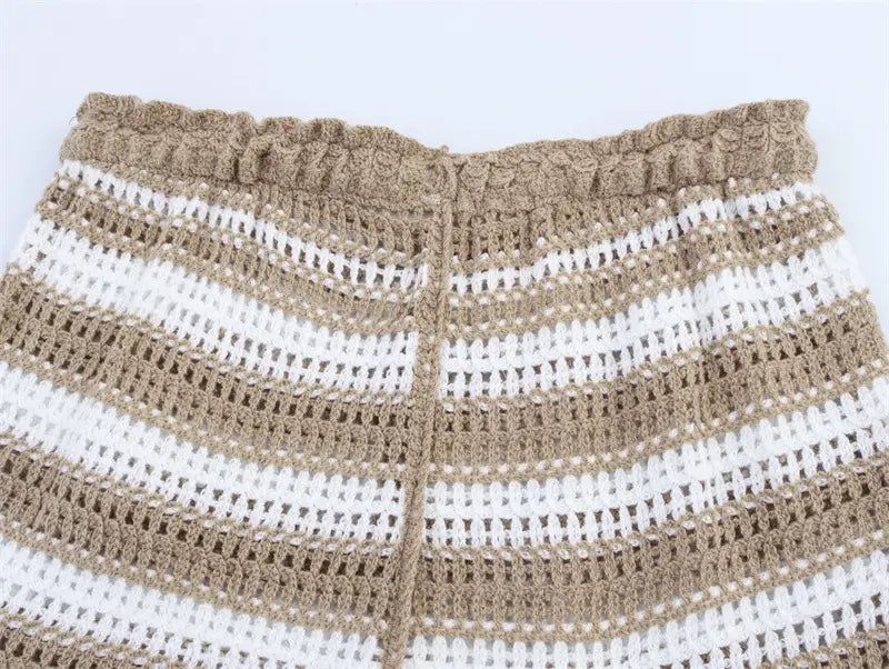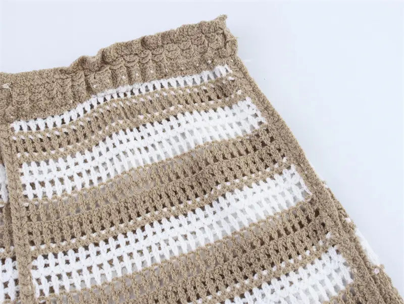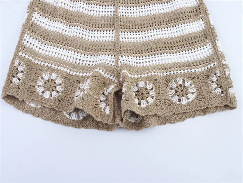 Strandanzug Damen Sommer Hohl Gestricktes Neckholder-Top Hohe Taille Shorts