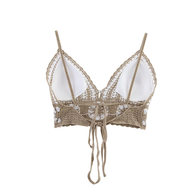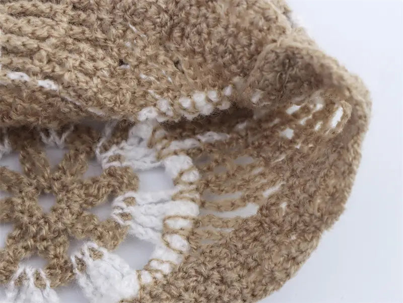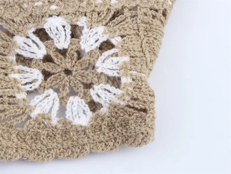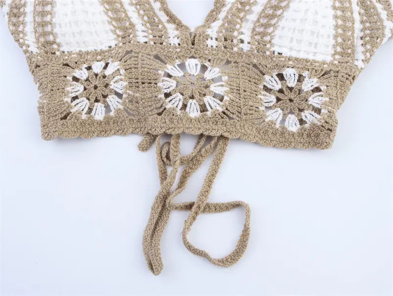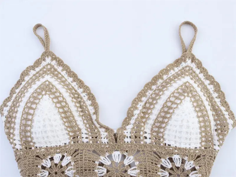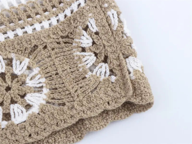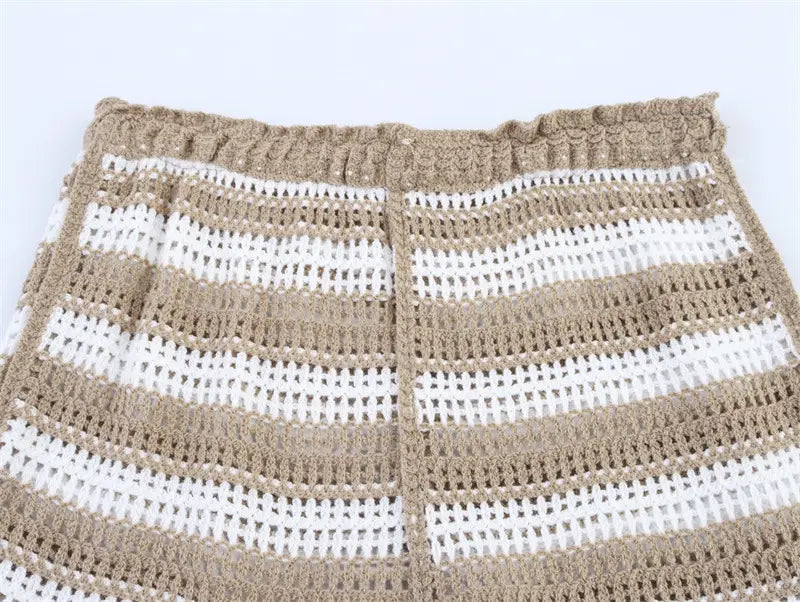Strandanzug Damen Sommer Hohl Gestricktes Neckholder-Top Hohe Taille Shorts