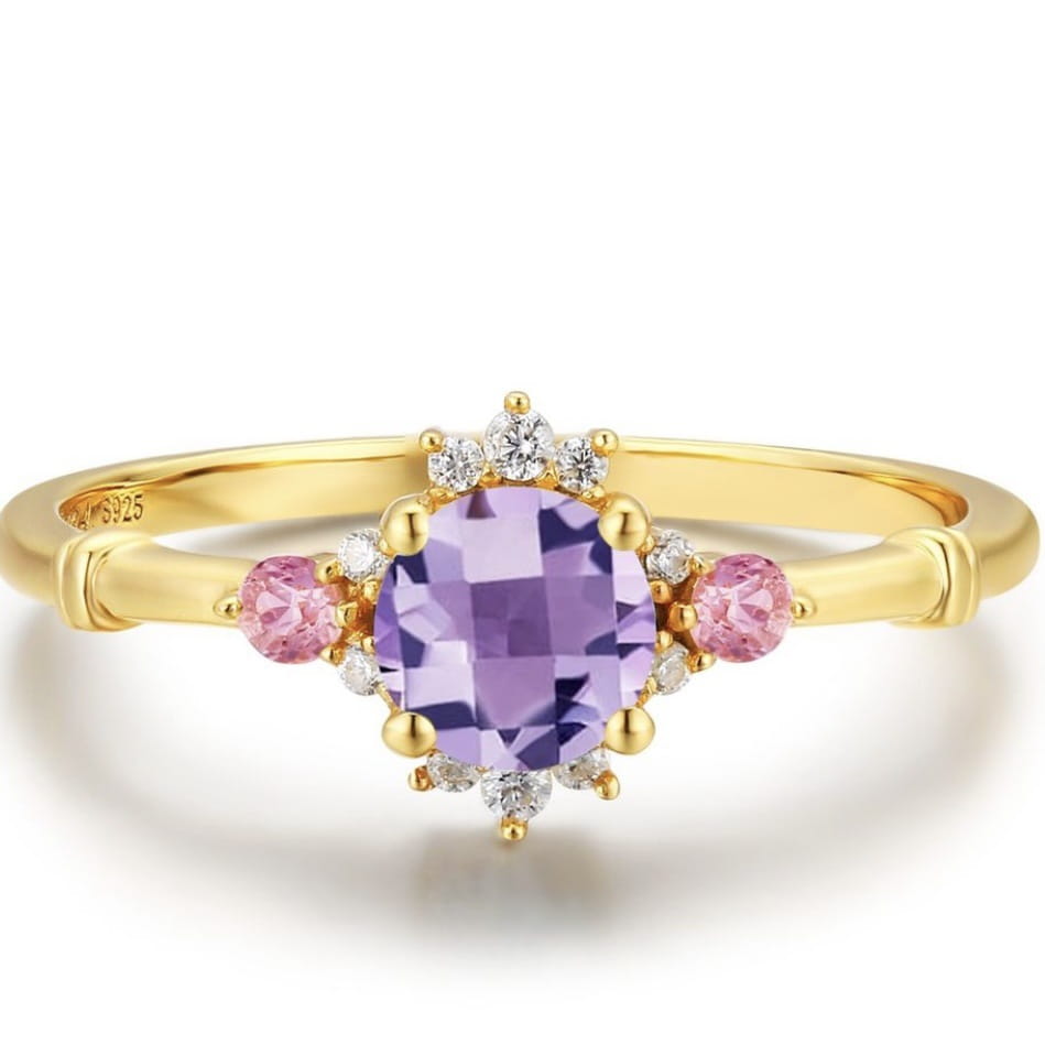 Beautiful Vintage Flowers Curtain-like Yarn Amethyst Ring Set - Gold / No 10 - electronic accessories