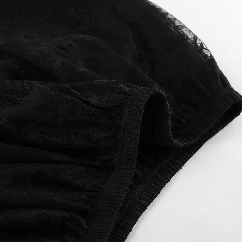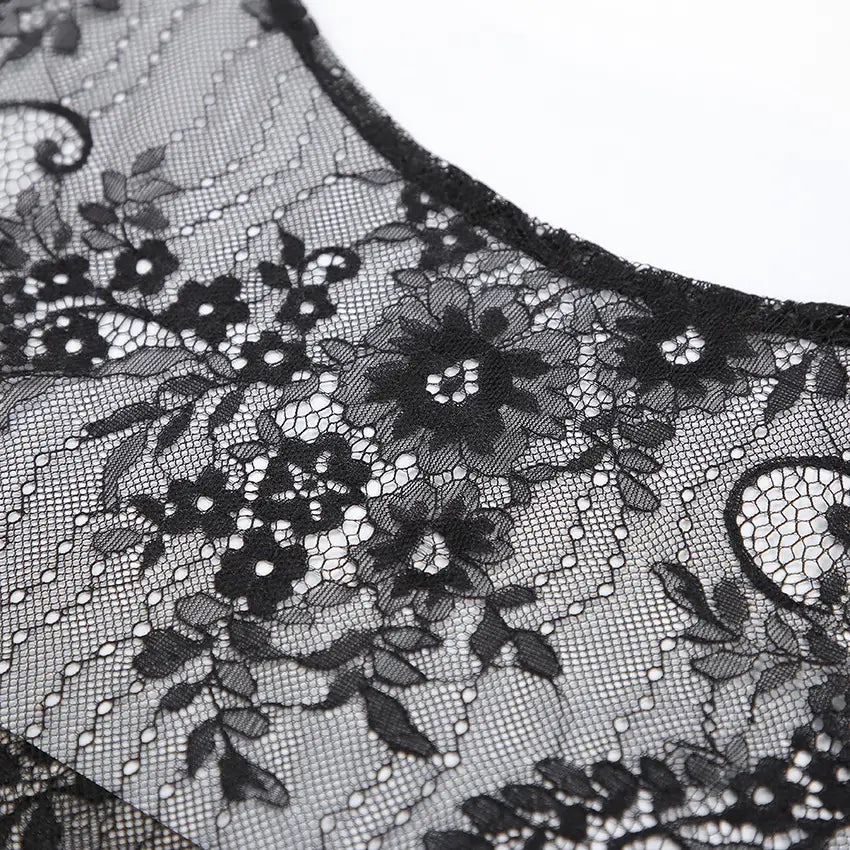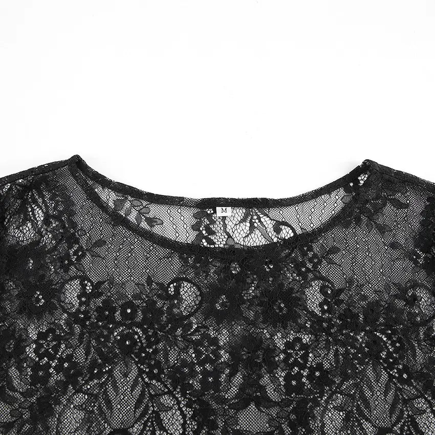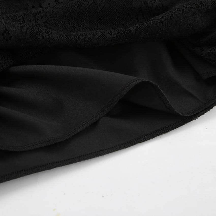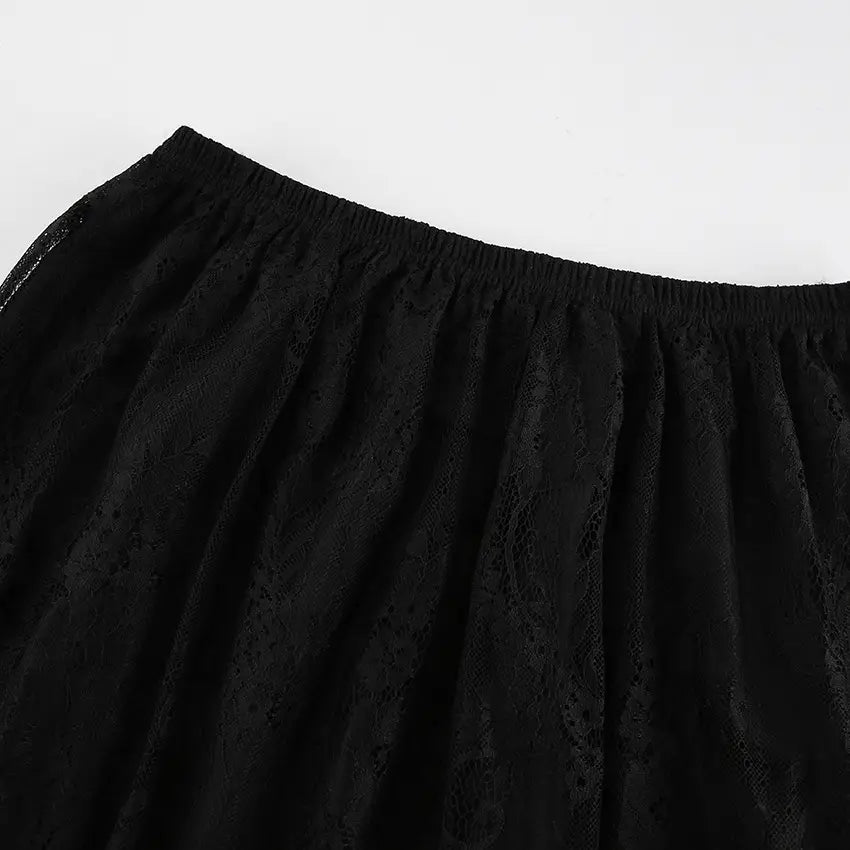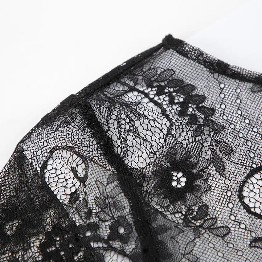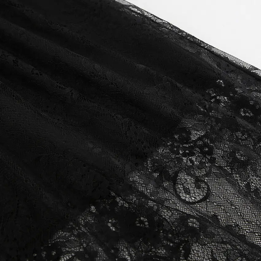 Black See-through Brocade Lace Long Sleeve Round-neck High Waist Skirt Suit - Other
