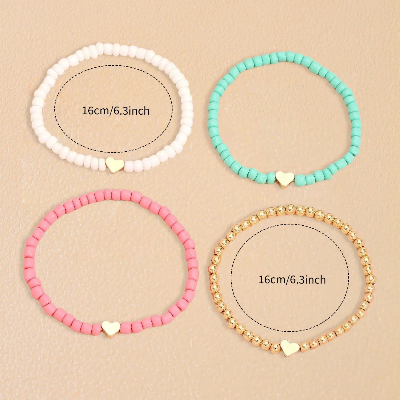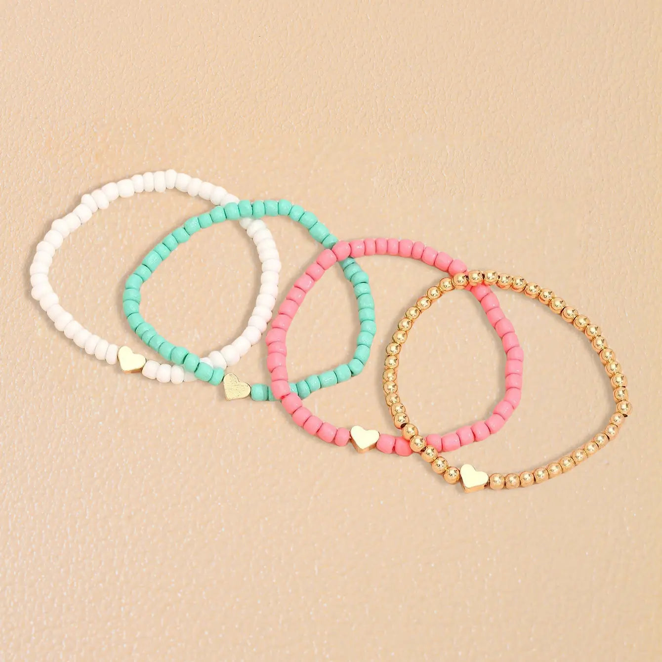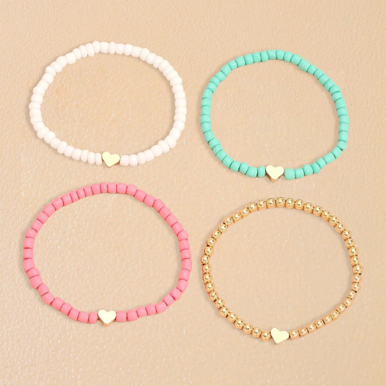 Bohemian Love Bead Four-piece Simple Peach Heart Beaded Bracelet - Four Colors / Glass rice beads - electronic