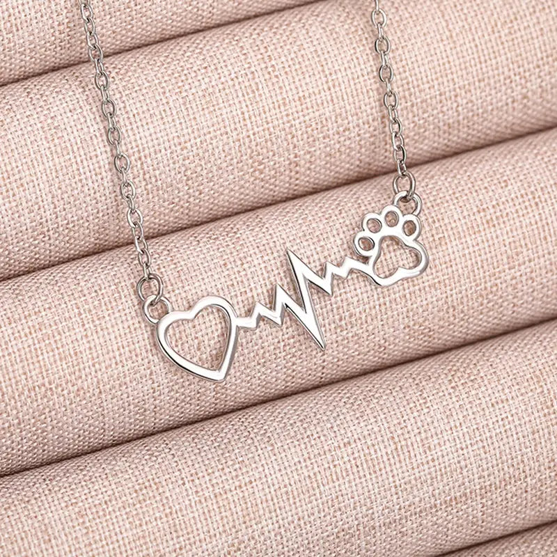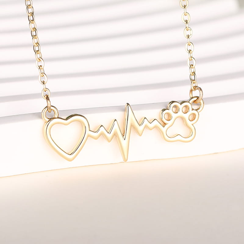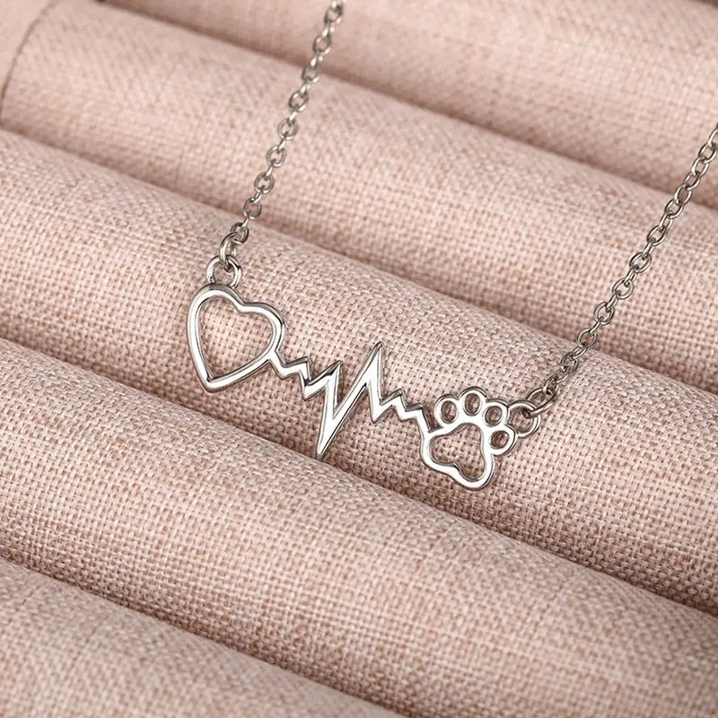 Katzenpfoten-Halskette mit Herzschlagdiagramm