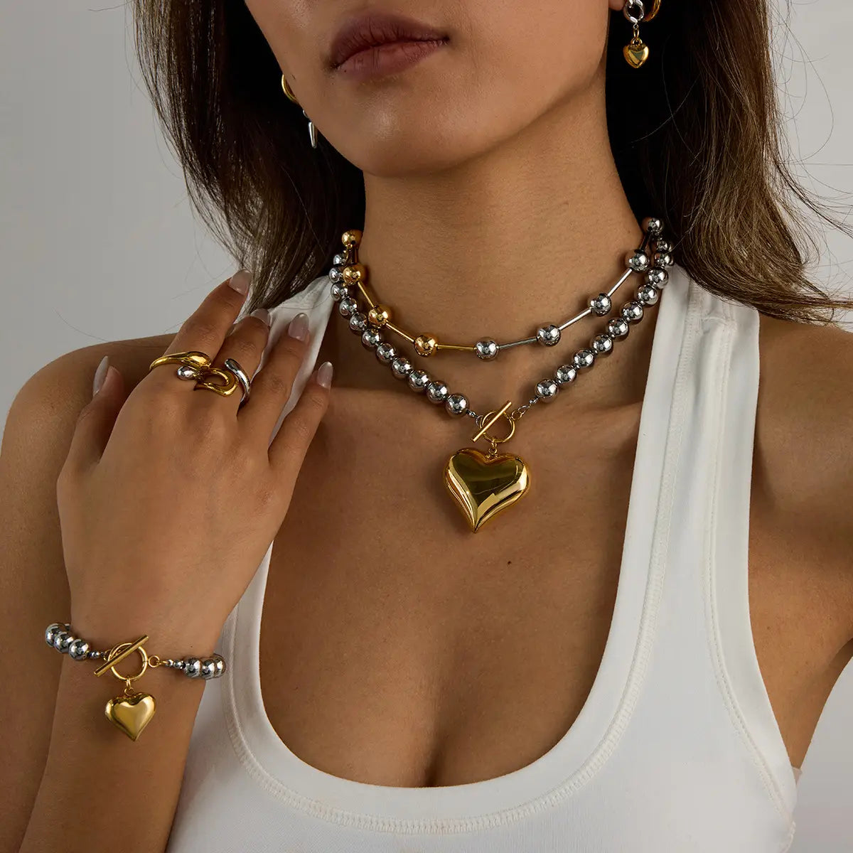 Color Matching Ornament Stainless Steel Heart Necklace - JDN2308061 - electronic accessories