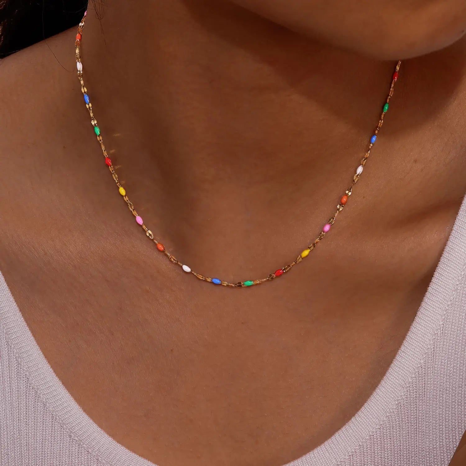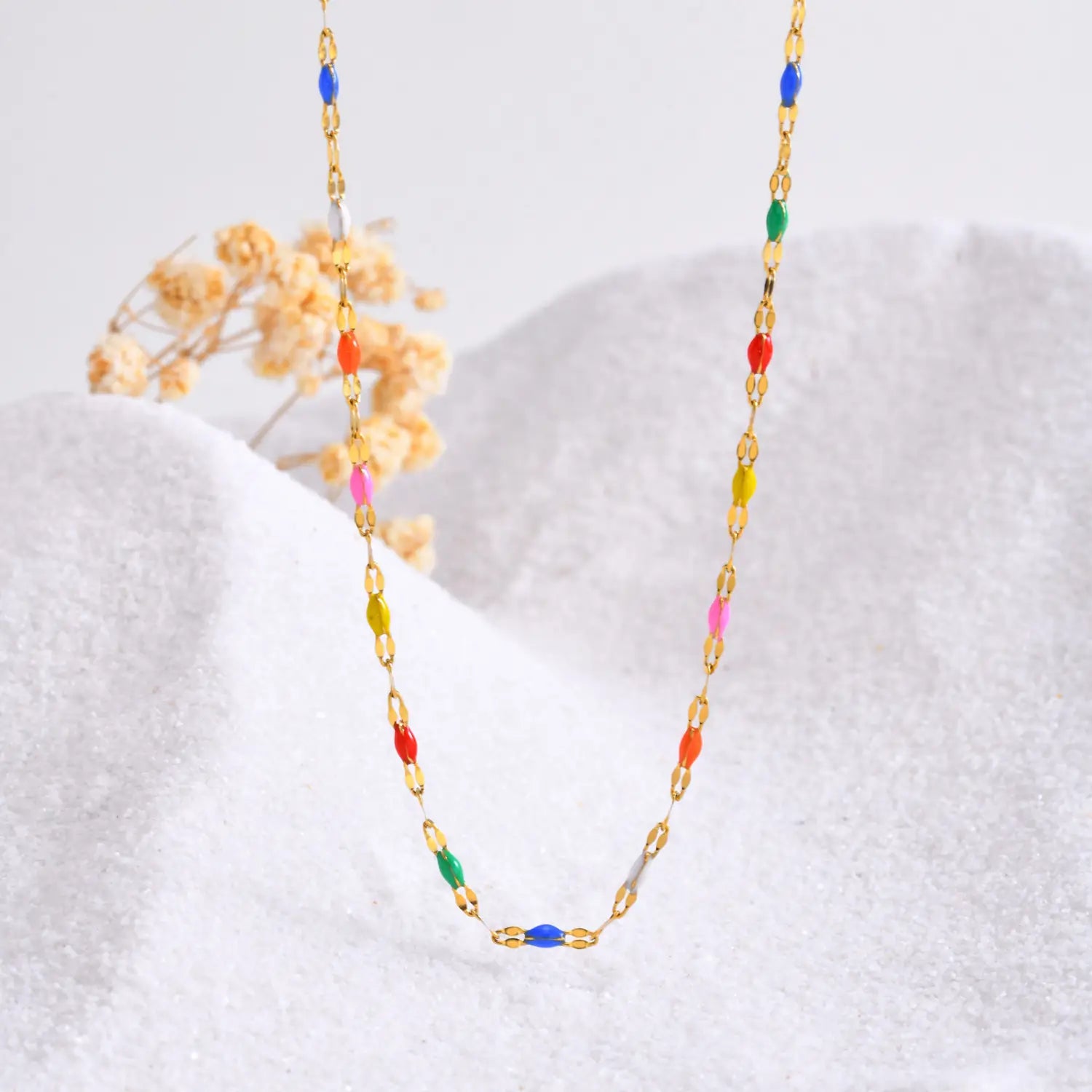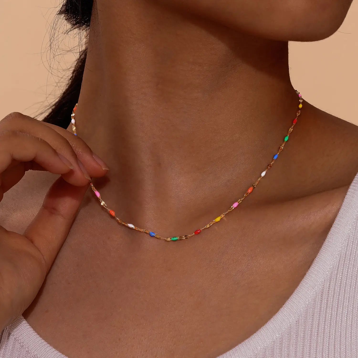 Colored Niche Beads Stainless Steel Lip Chain Necklace - electronic accessories
