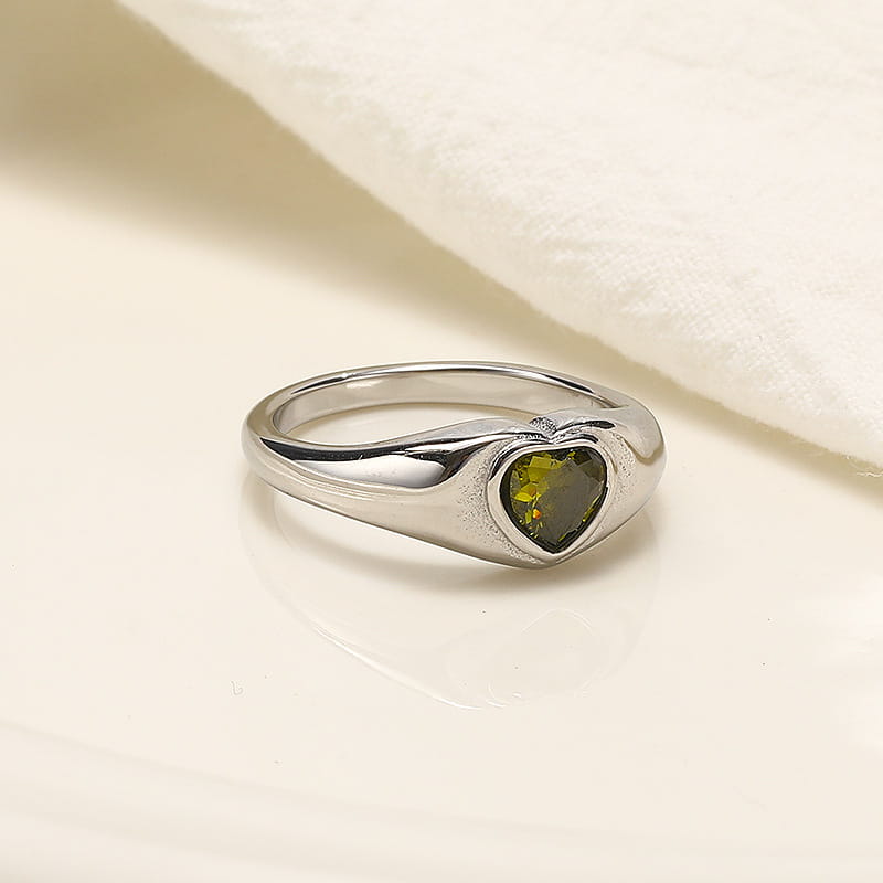 Design Heart-shaped Inlaid Zircon Titanium Steel Ring For Women - Olive Lvzuan / No 10 - electronic accessories