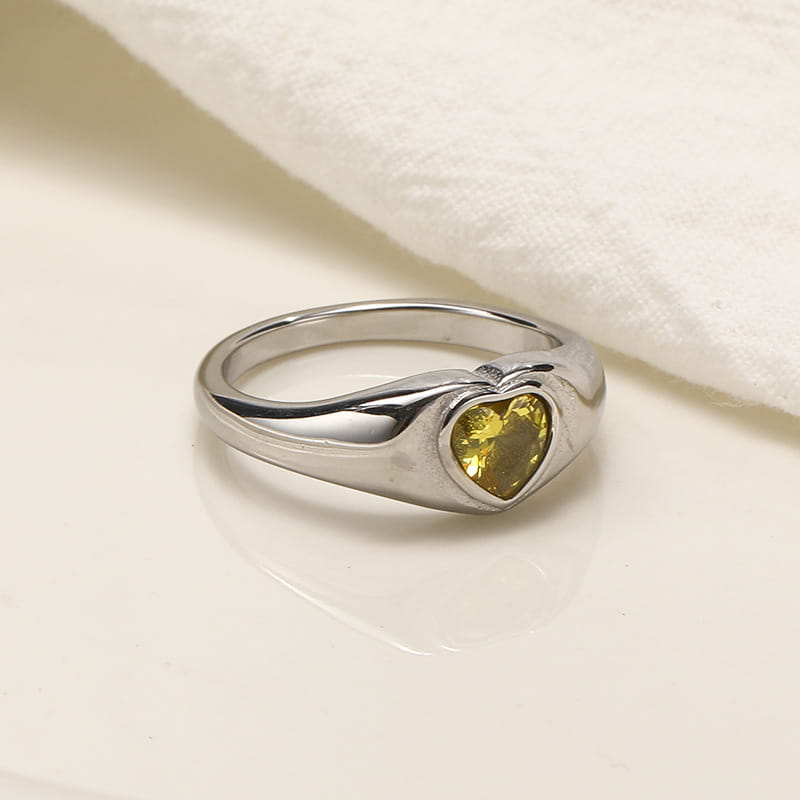 Design Heart-shaped Inlaid Zircon Titanium Steel Ring For Women - Yellow Diamond / No 10 - electronic accessories