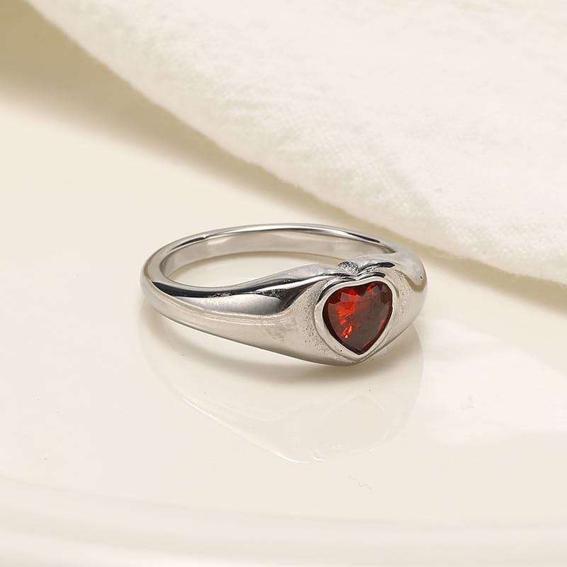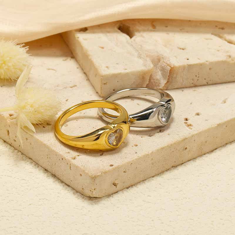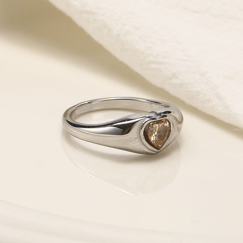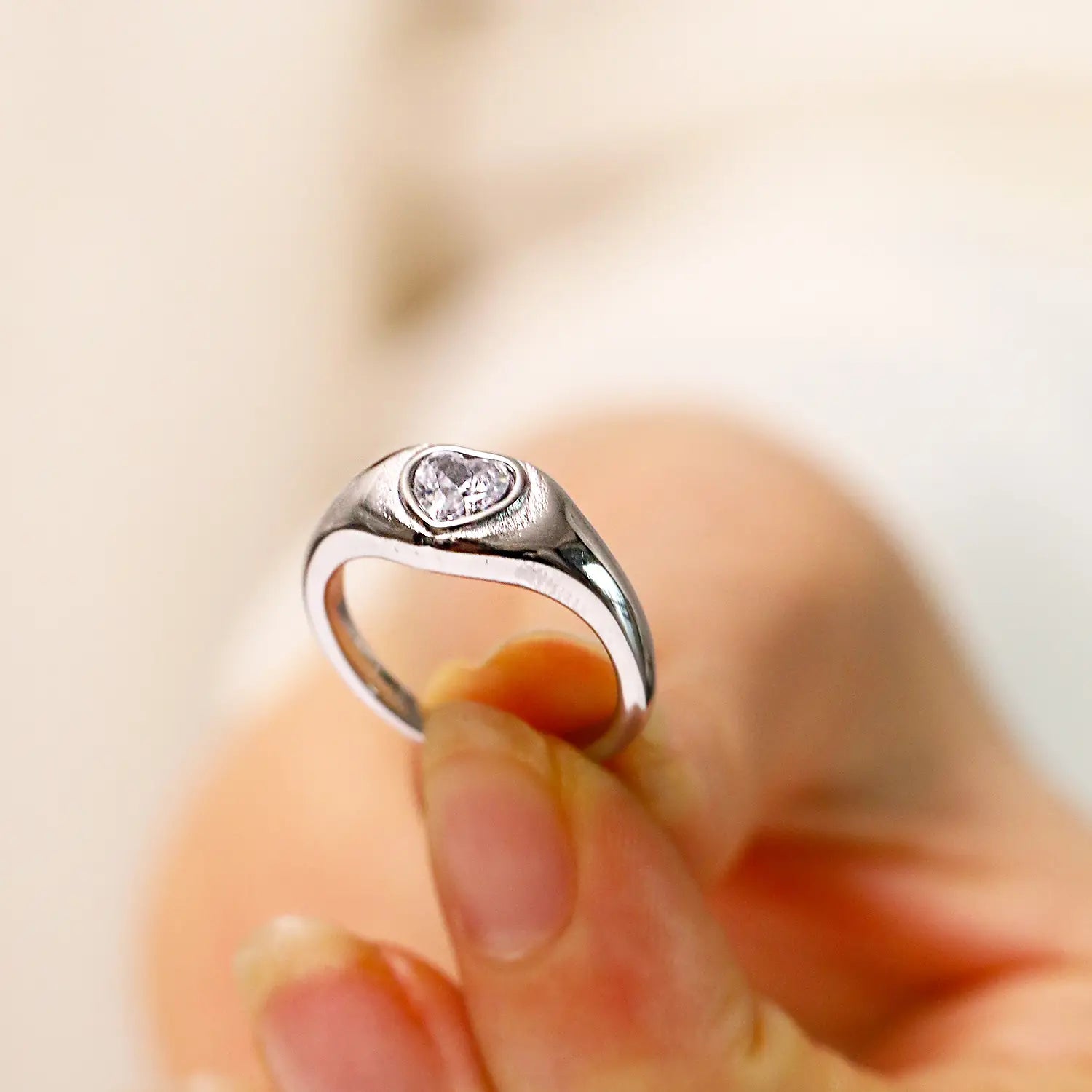 Design Herzförmiger Ring aus Titanstahl mit eingelegtem Zirkonia für Damen