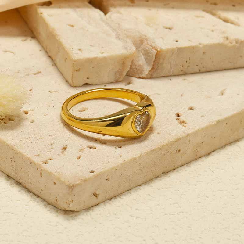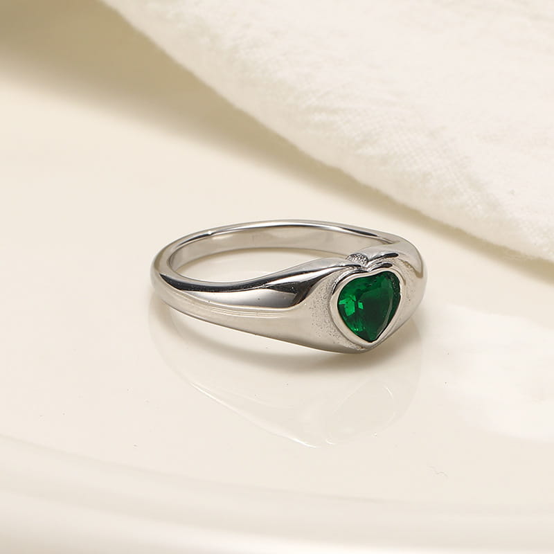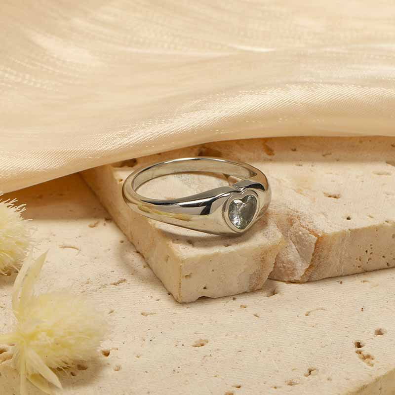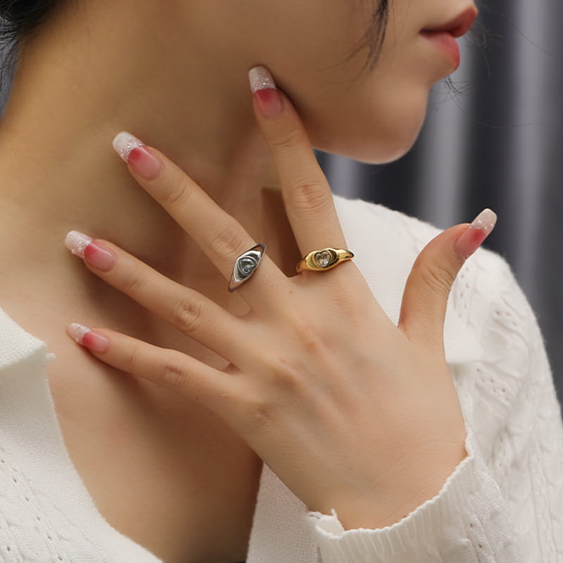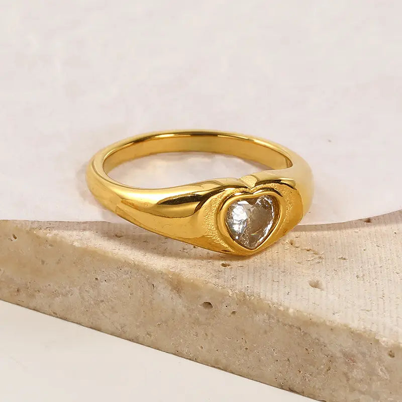 Design Herzförmiger Ring aus Titanstahl mit eingelegtem Zirkonia für Damen