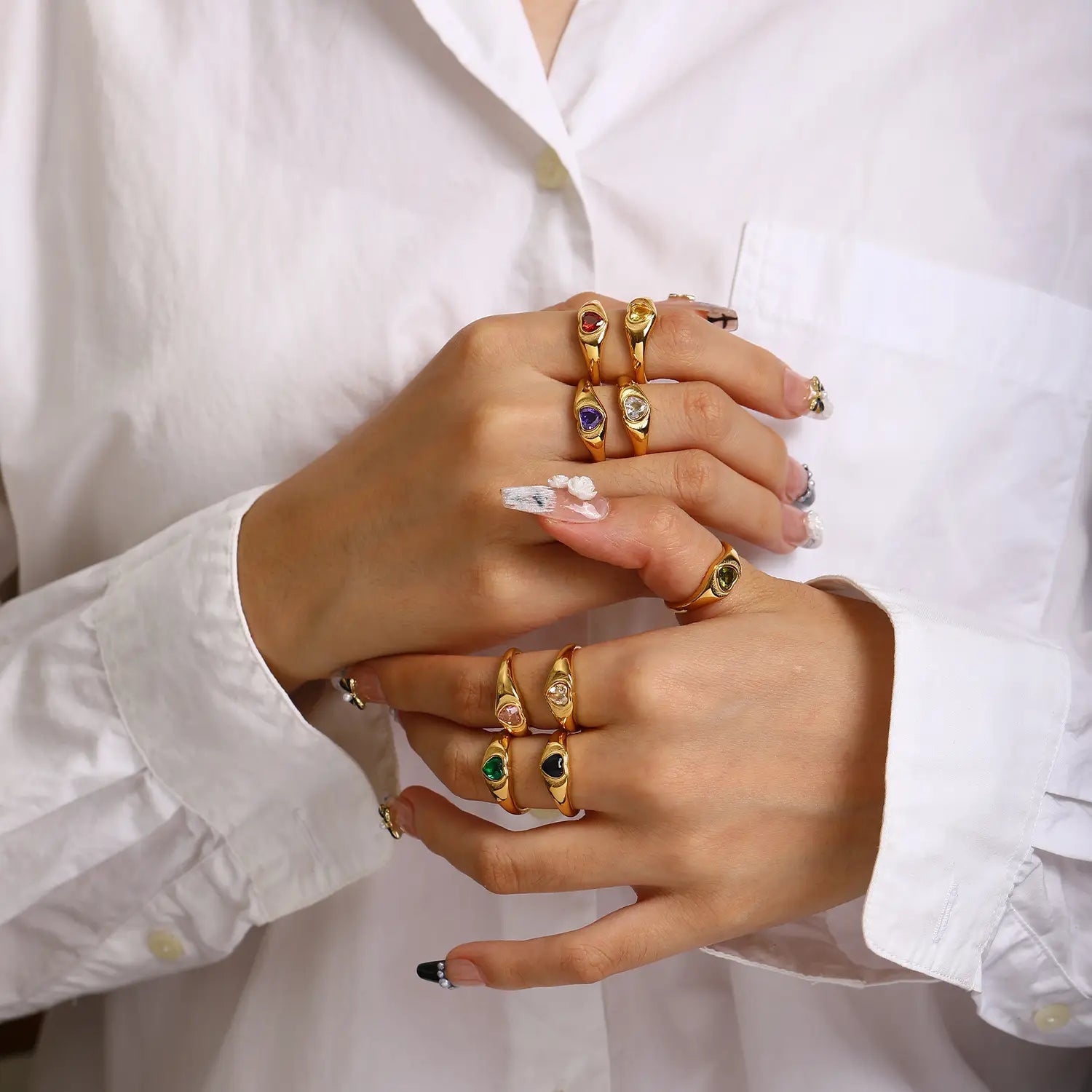 Design Heart-shaped Inlaid Zircon Titanium Steel Ring For Women - Golden Olive Lvzuan / No 10 - electronic accessories