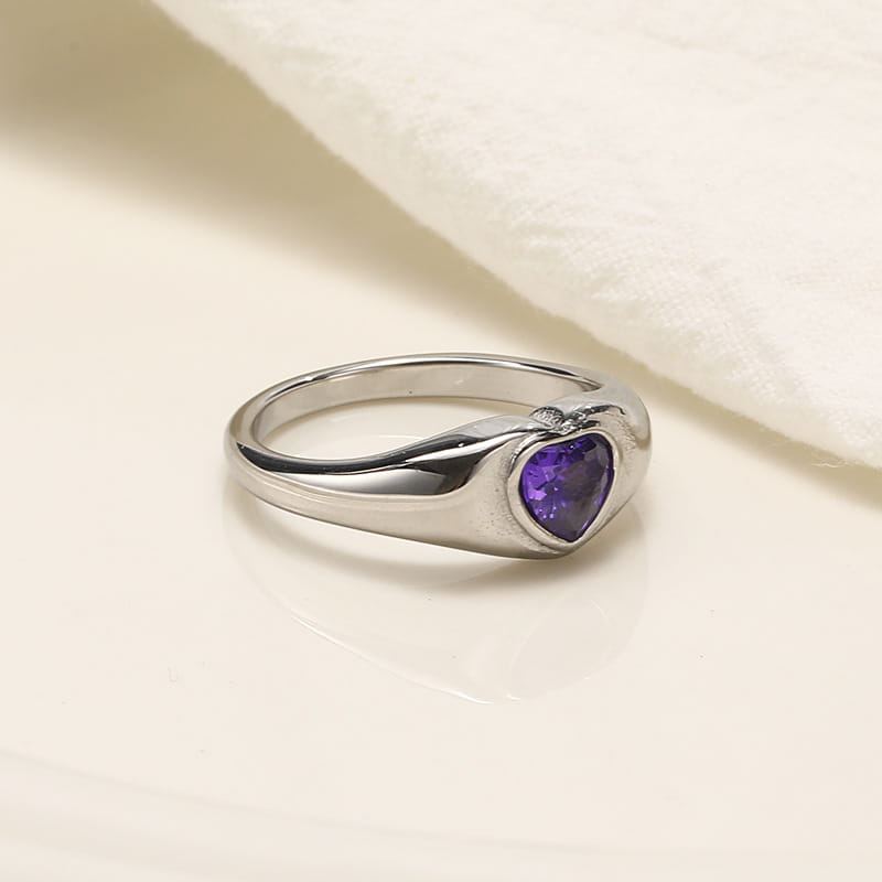 Design Heart-shaped Inlaid Zircon Titanium Steel Ring For Women - Purple Diamond / No 10 - electronic accessories