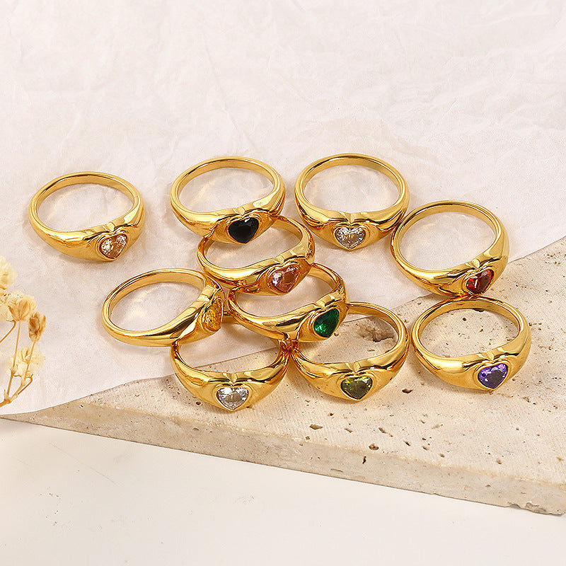 Design Heart-shaped Inlaid Zircon Titanium Steel Ring For Women - Gold Champagne Diamond / No 10 - electronic