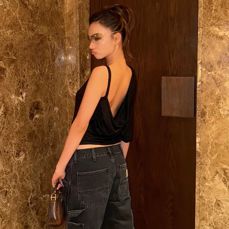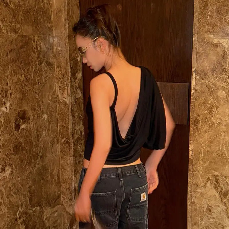 Plissiertes Westentop mit diagonalem Kragen für Damen