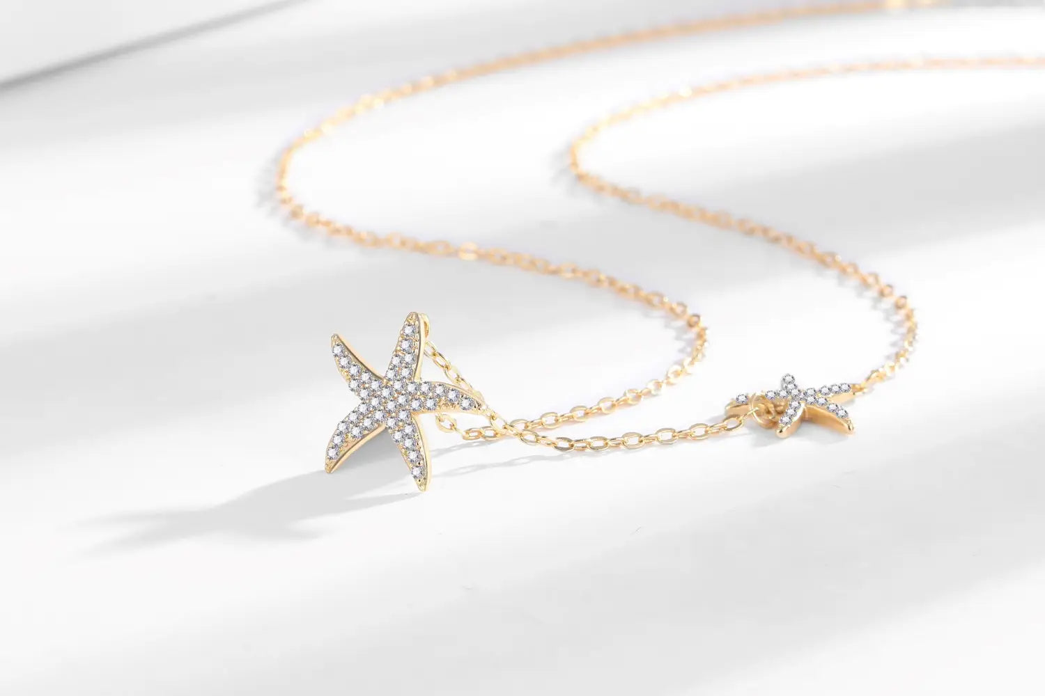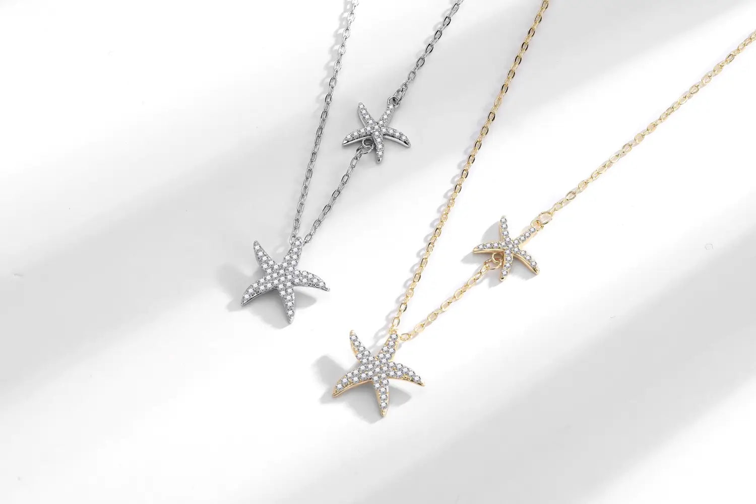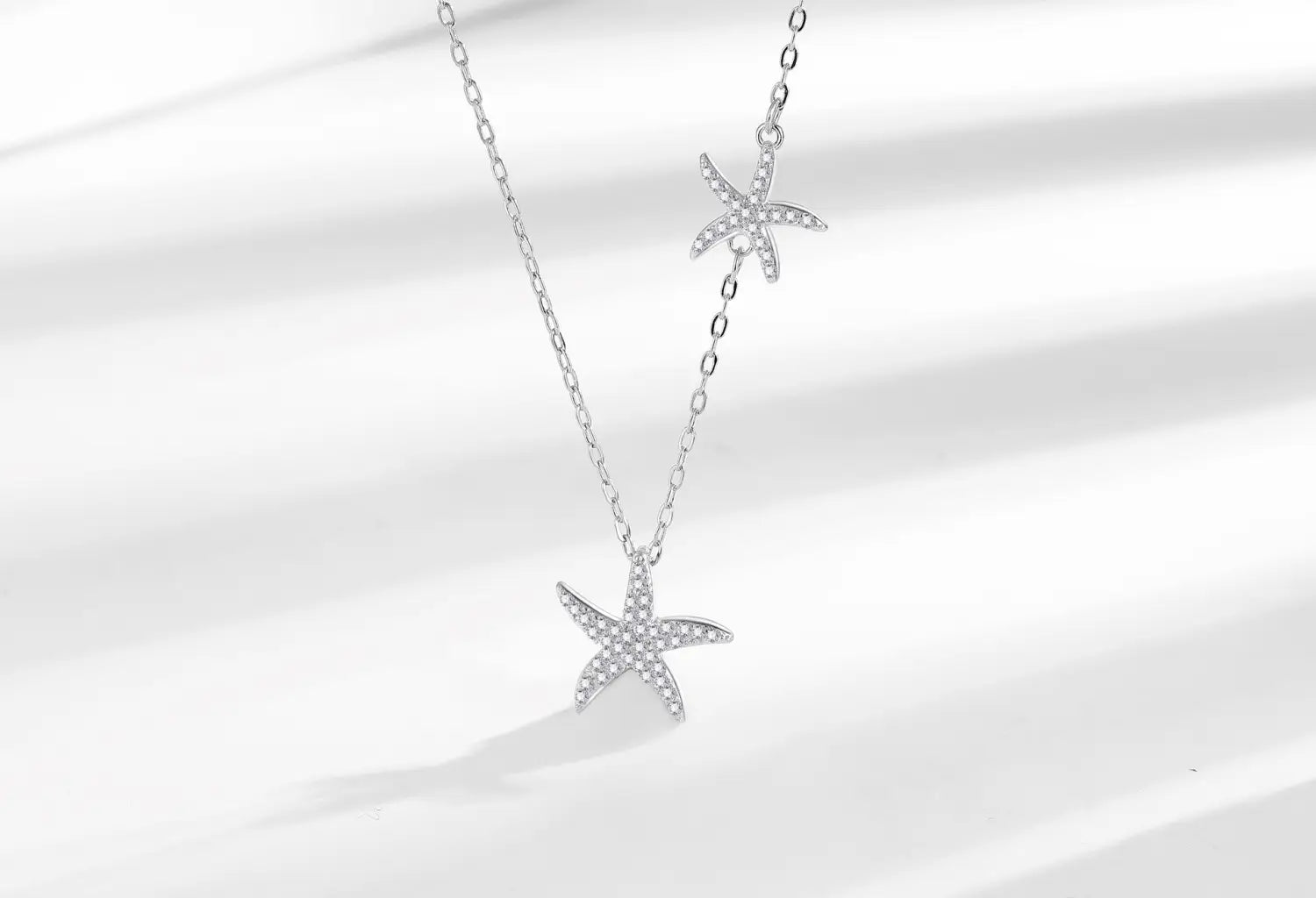 Double Starfish Full Diamond Necklace Female Fashion Special-interest - White Gold Color - electronic accessories