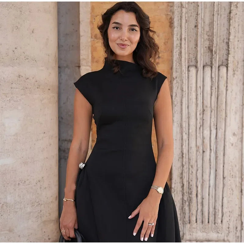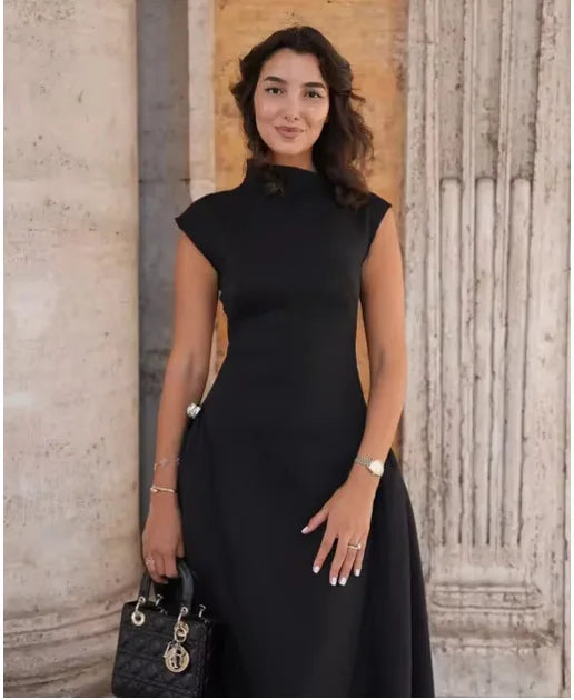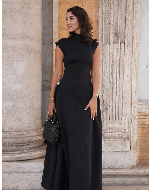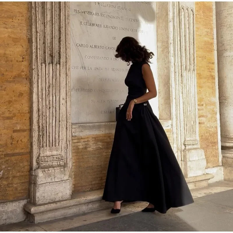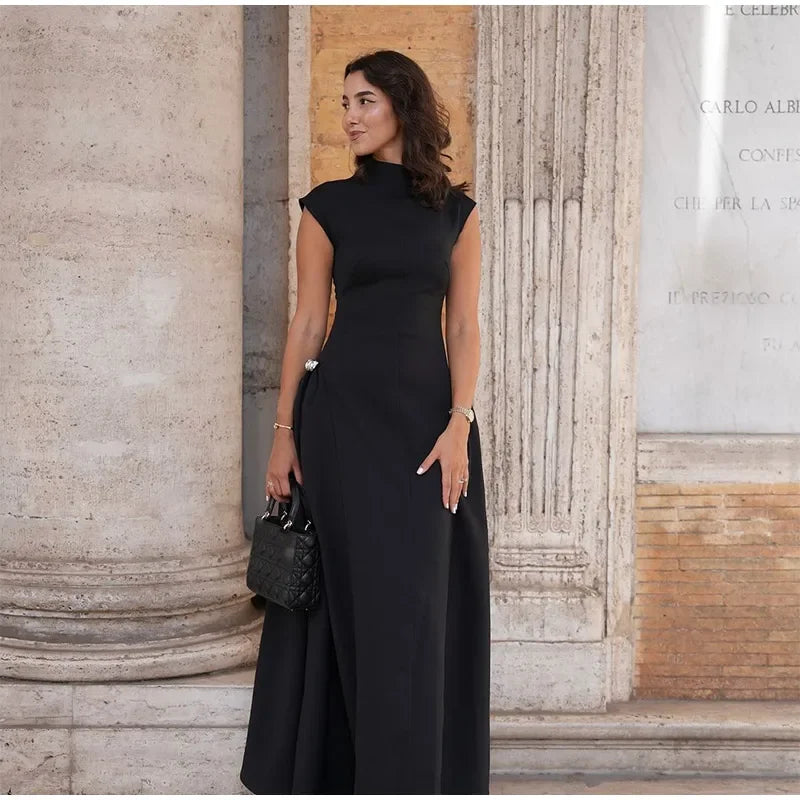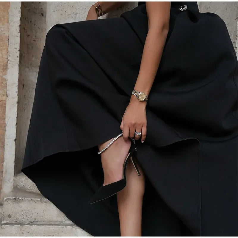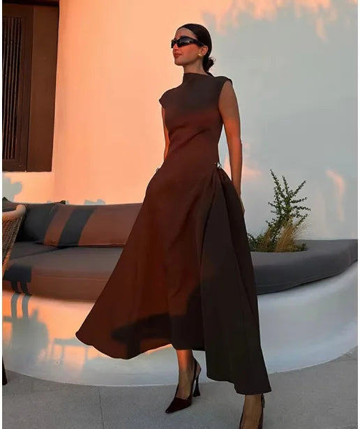 Elegant Diagonal Neck Metal Long Brown Dress