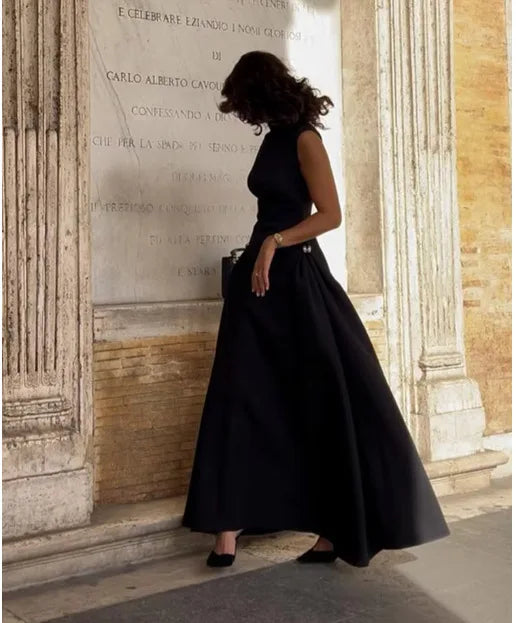 Elegantes langes braunes Metallkleid mit diagonalem Ausschnitt