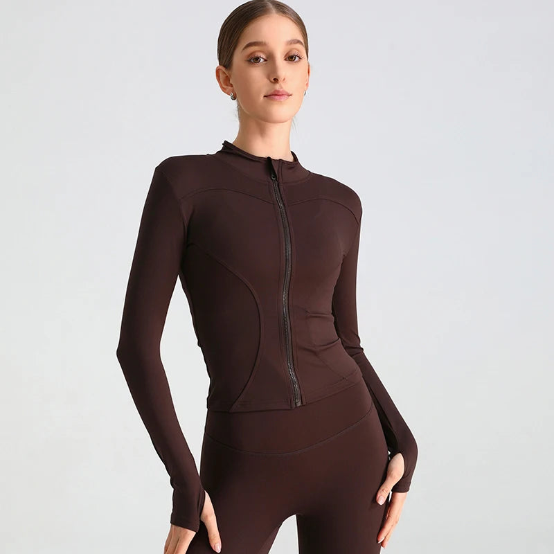 Exercise Jacket Slimming Shaping Zipper Top - Dark Coffee / XL