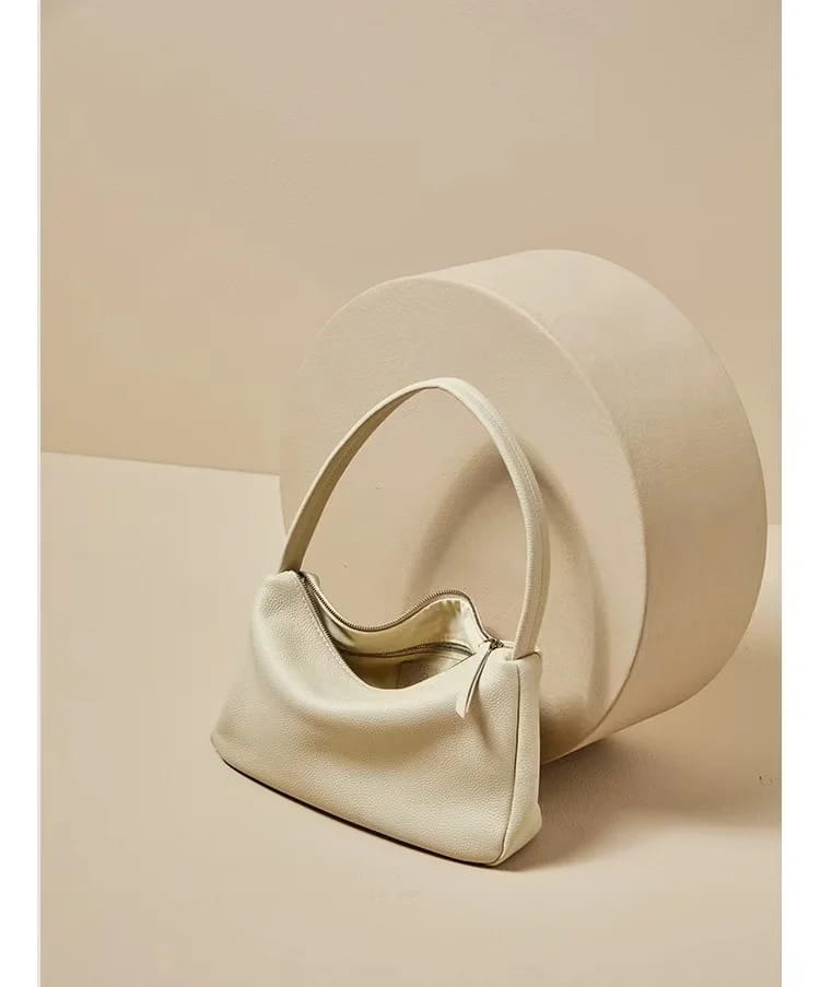 First Layer Cowhide French Single Shoulder Underarm Bag - Ivory