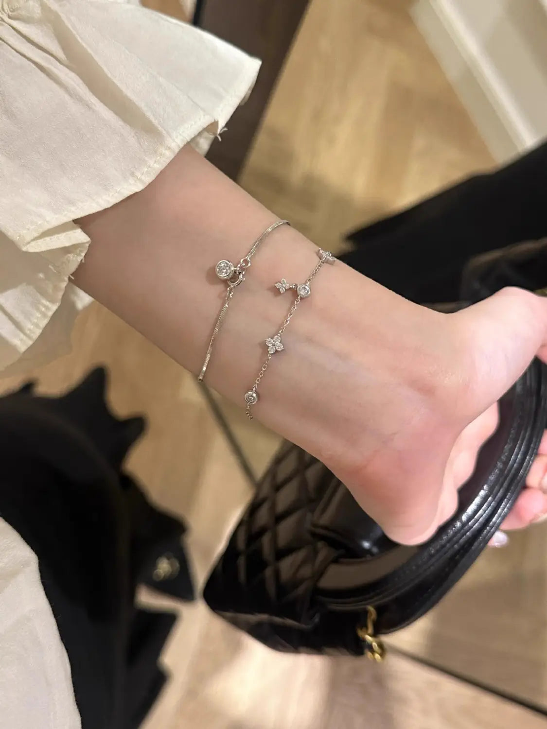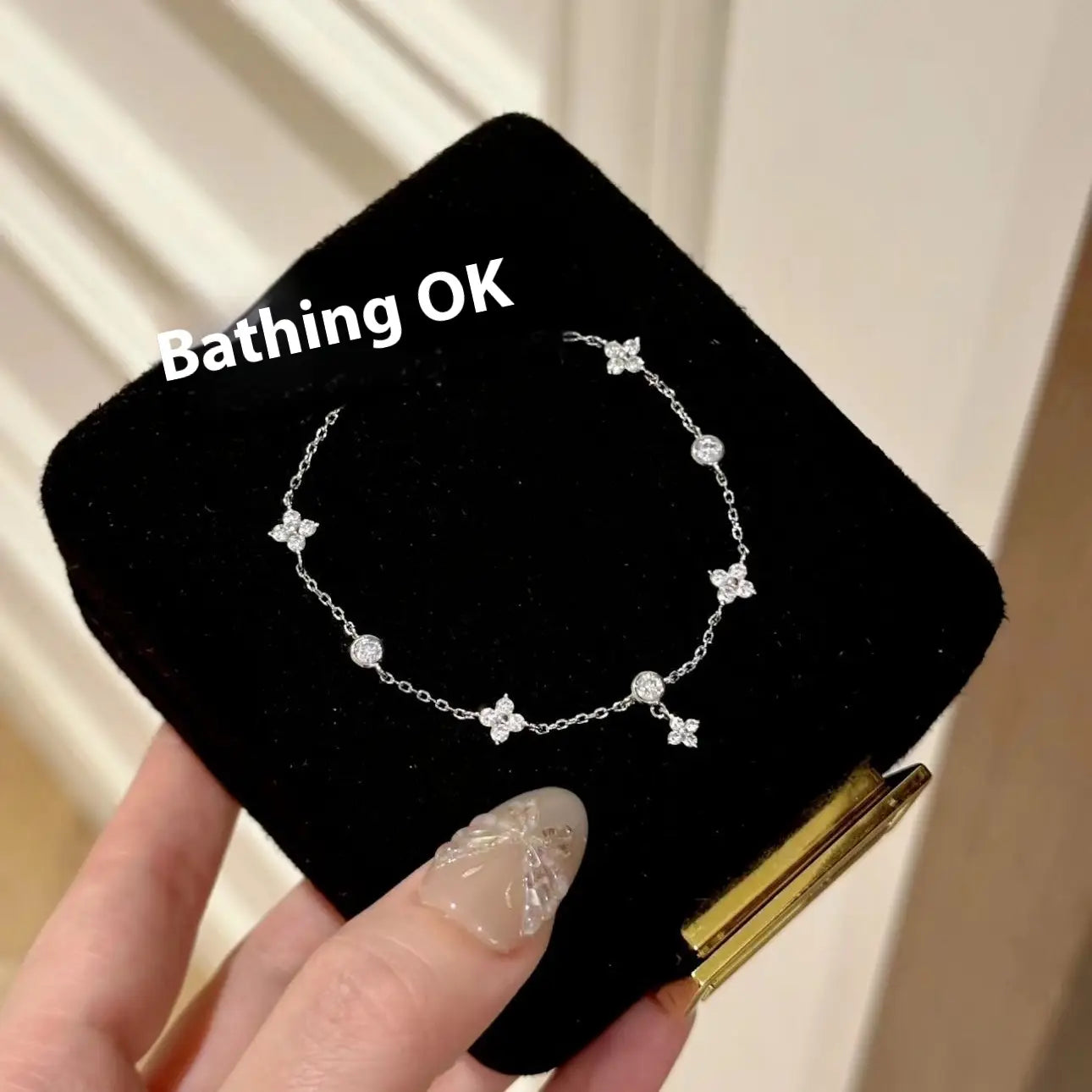 Four-leaf Clover Zircon Bracelet Fashion Gift Dignified Sense Of Design - White Gold Color - electronic accessories