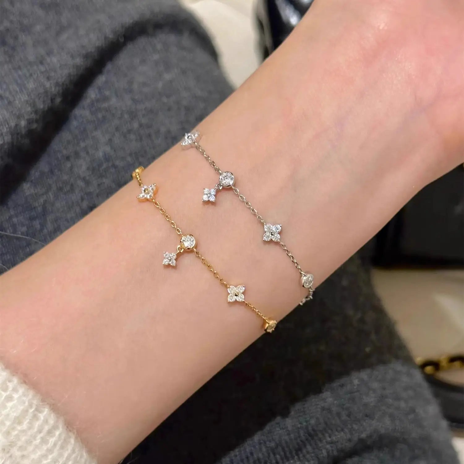 Hochwertiges vierblättriges Kleeblatt-Zirkon-Armband, modisches Geschenk, würdevoller Sinn für Design