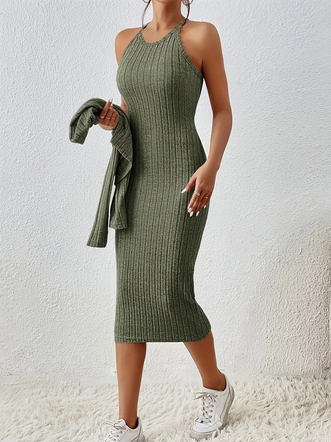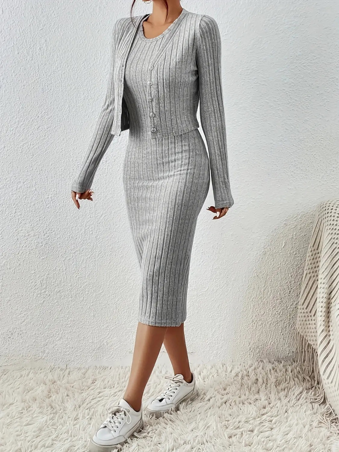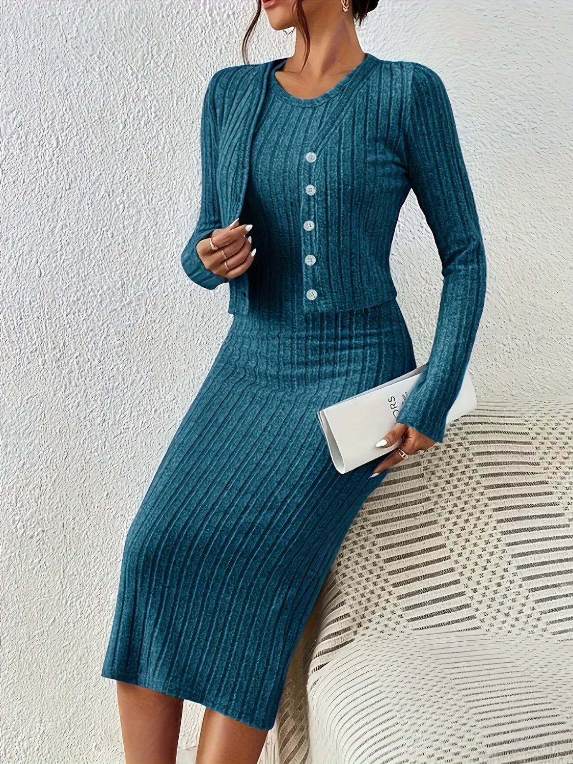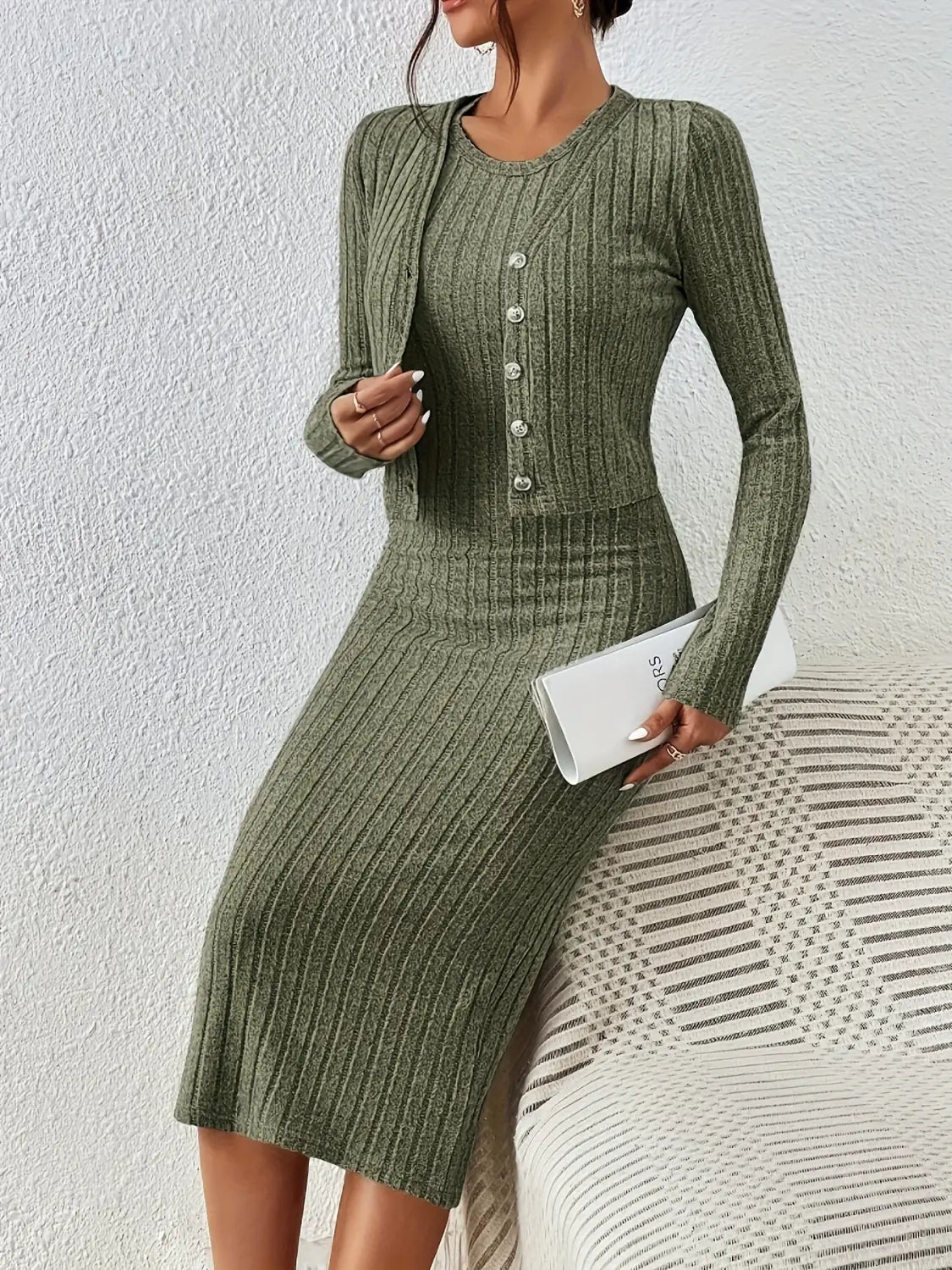 Kurzes Oberteil mit Knopfleiste vorne und schmal geschnittenes Kleid