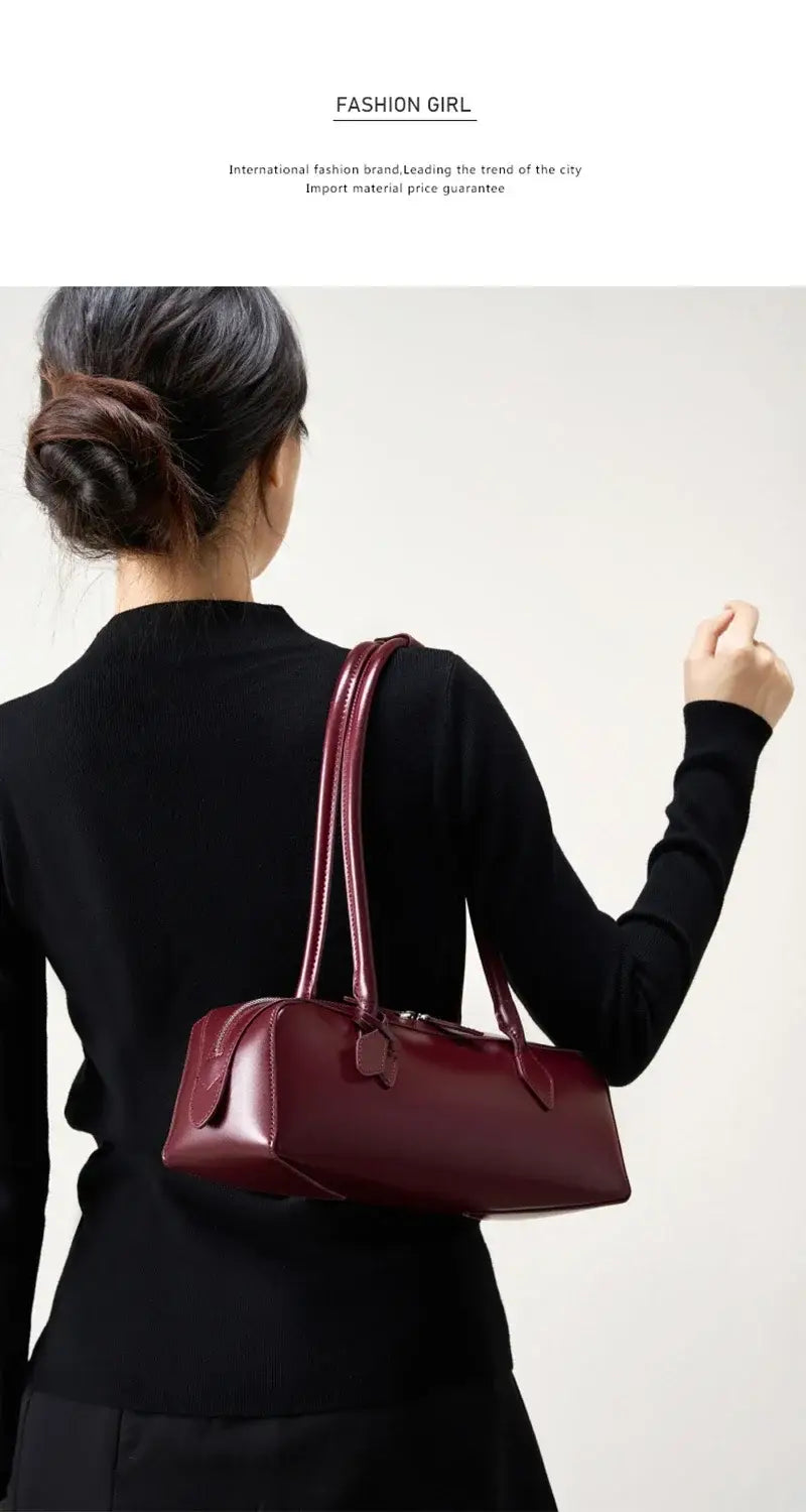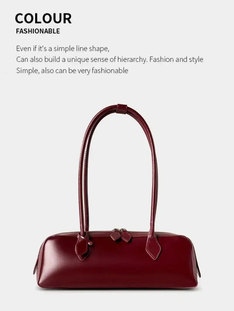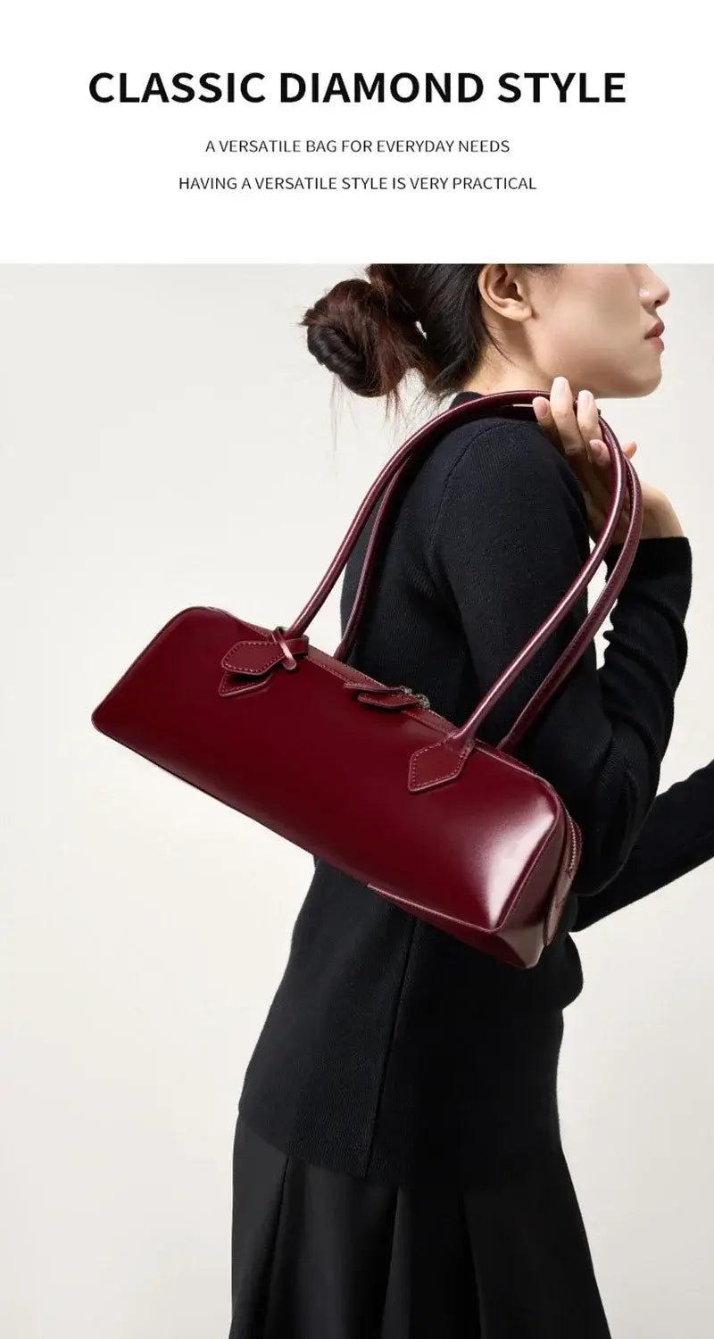 Genuine Leather Women’s Shoulder Bag - Wine Red
