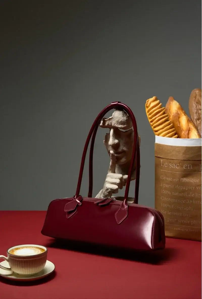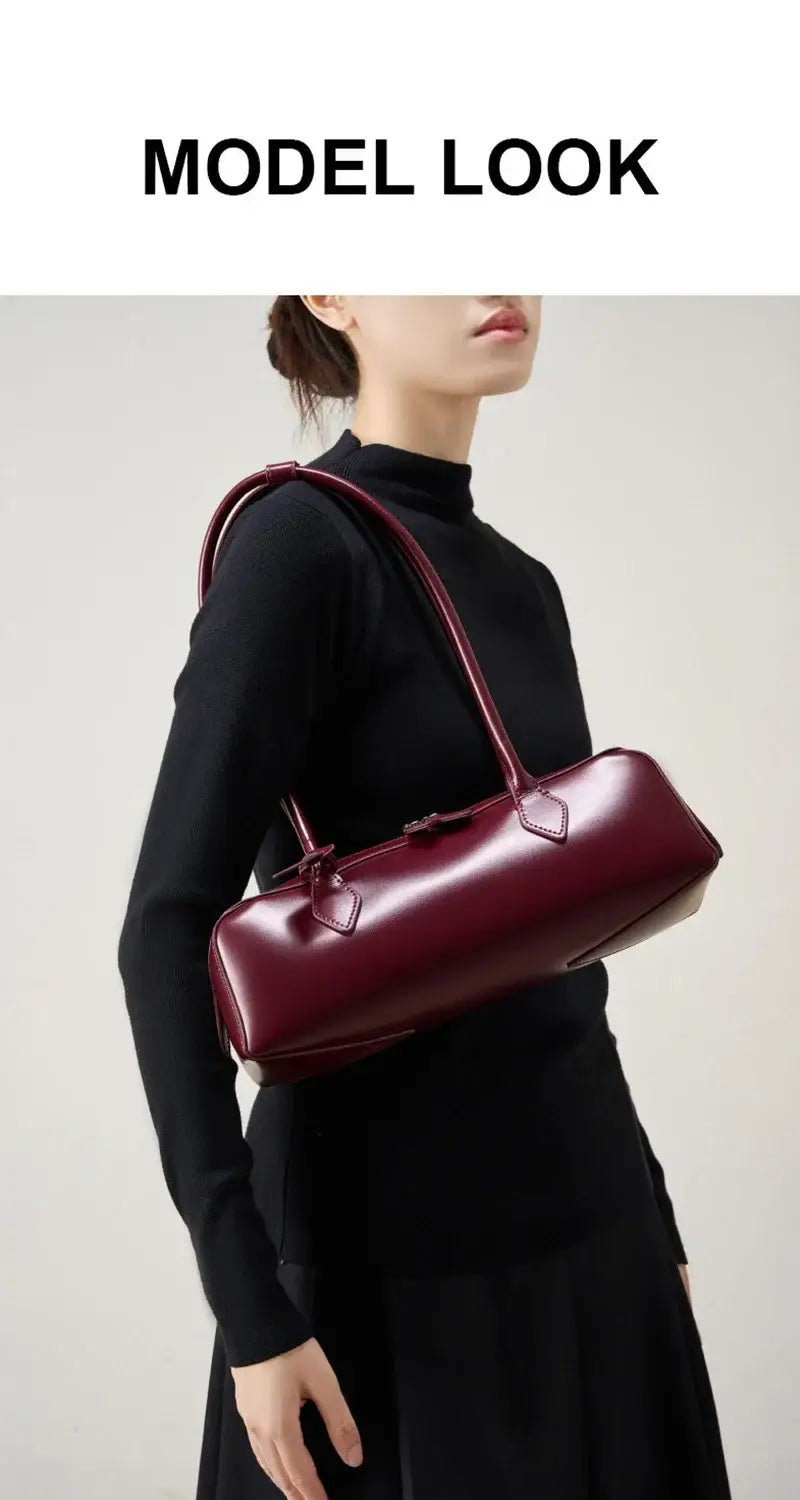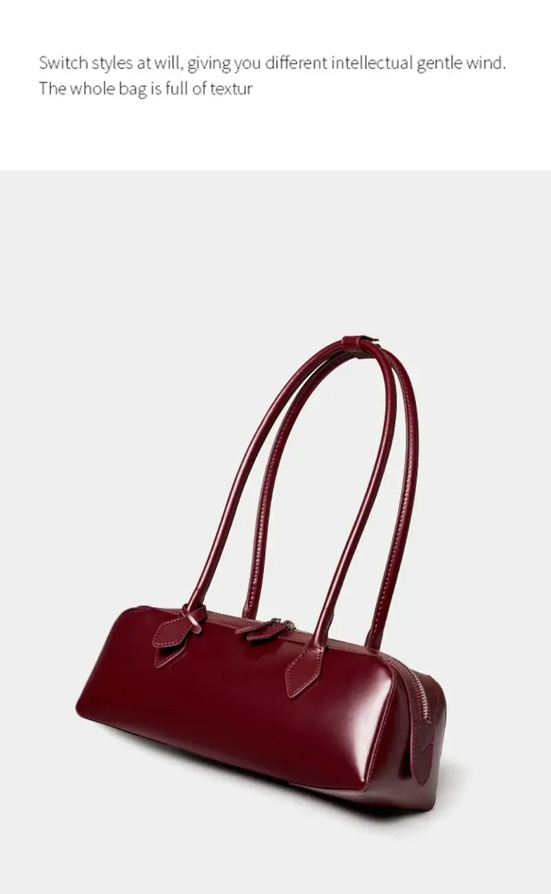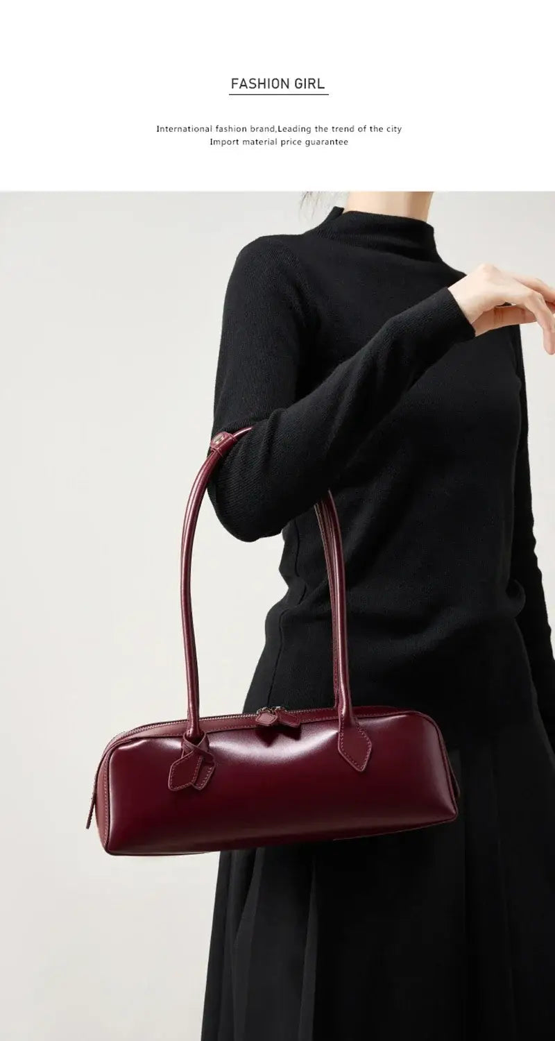 Genuine Leather Women’s Shoulder Bag - Wine Red