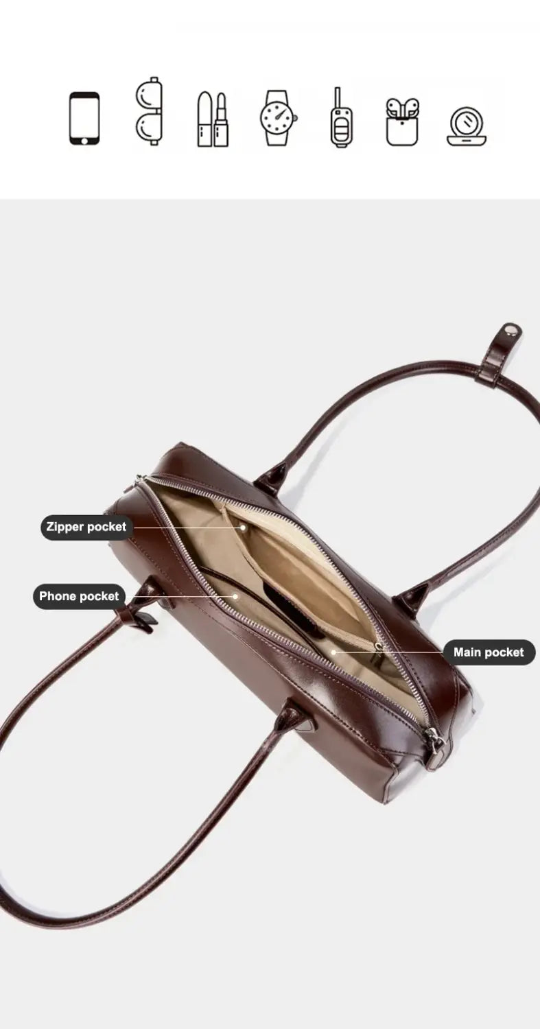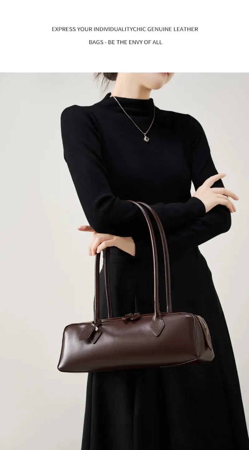 Genuine Leather Women’s Shoulder Bag - Coffee