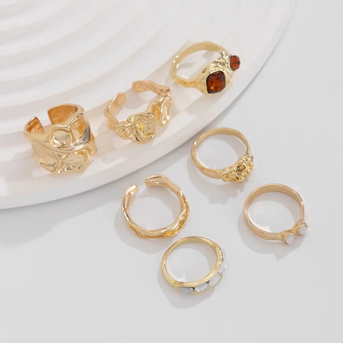 Geometric Diamond Gemstone Ring Suit Women - Light Gold 4 Set Of 5138 - electronic accessories