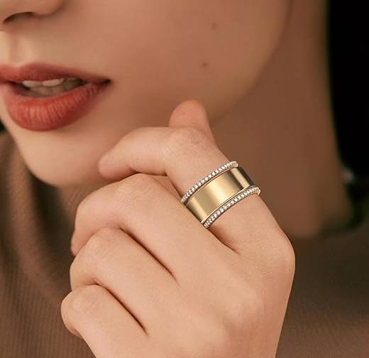 Glossy Trim Rhinestone Ring Titanium Steel - electronic accessories