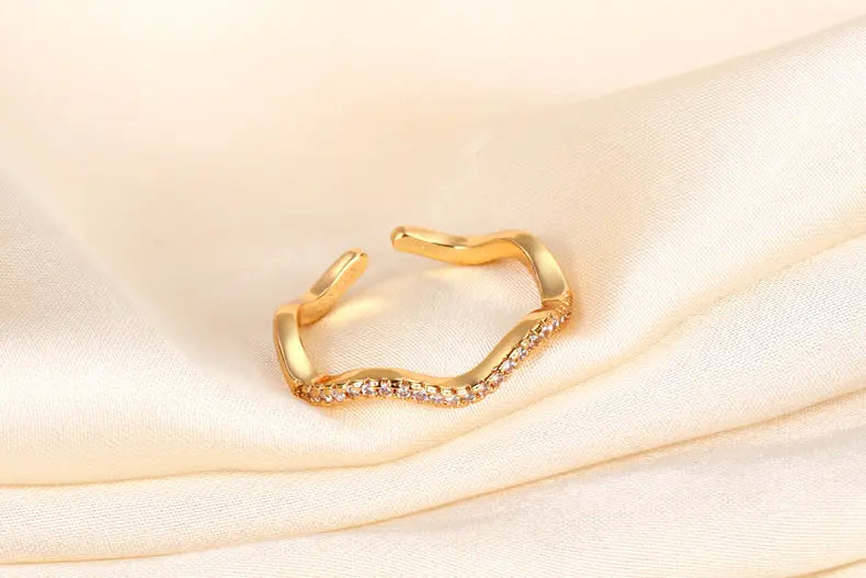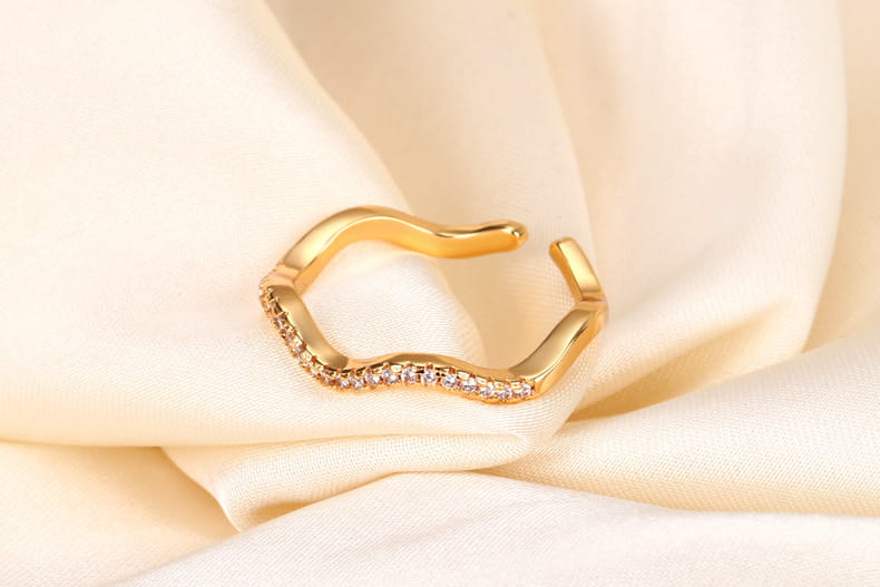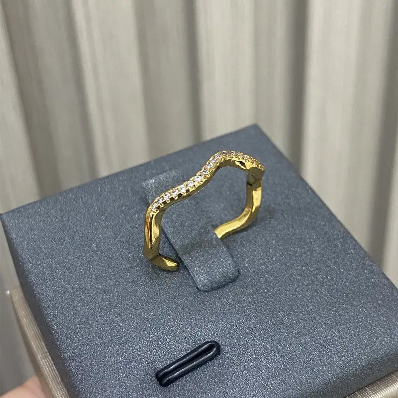 Gold-plated Exquisite Diamond Wave Open Ring For Women - Champagne Gold - electronic accessories
