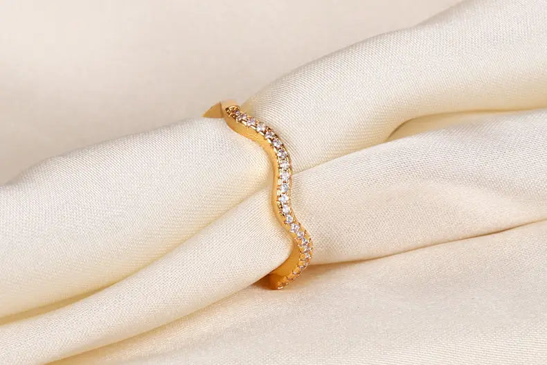 Vergoldeter, exquisiter offener Diamantwellenring für Damen