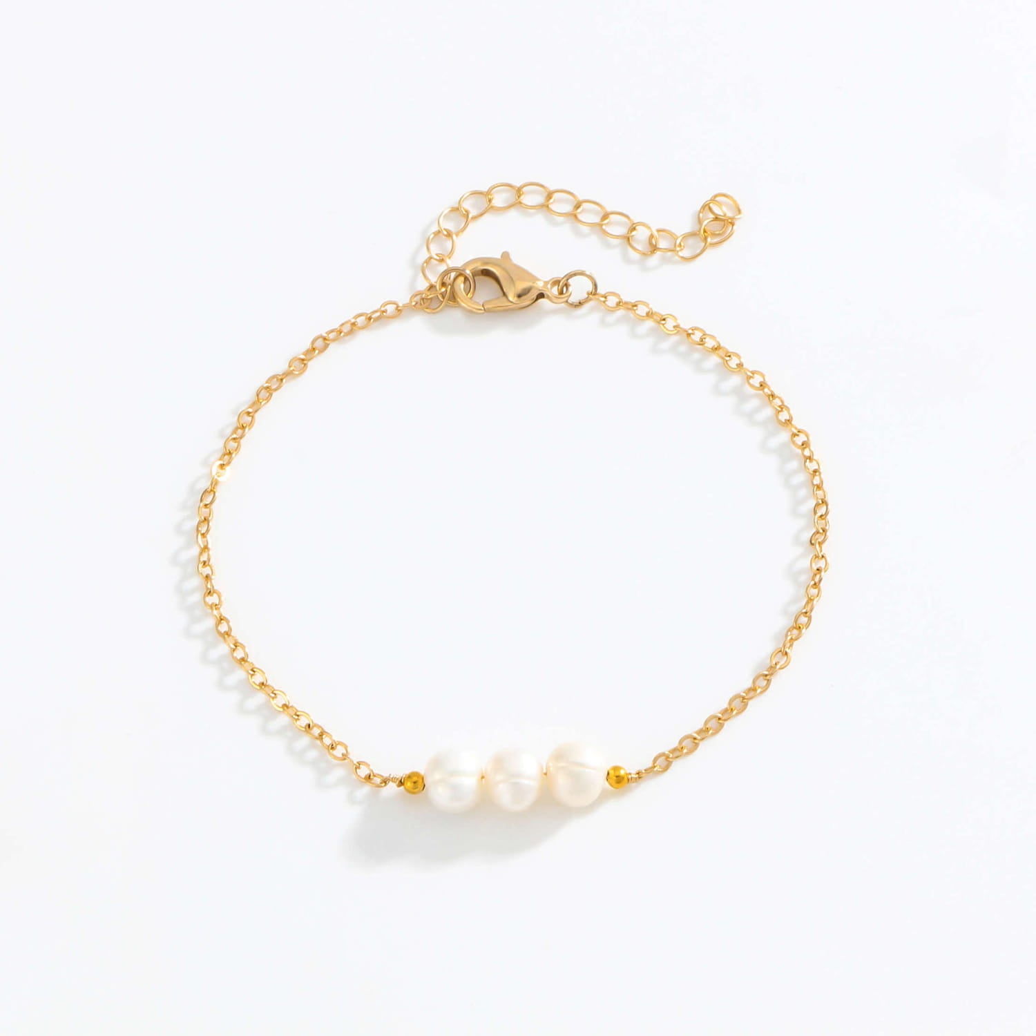 Goldarmband mit drei natürlichen Süßwasserperlen
