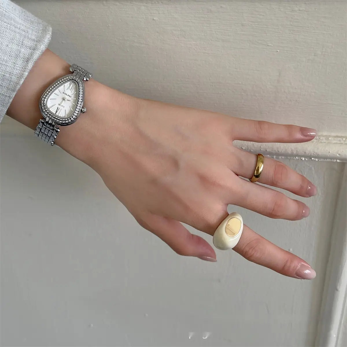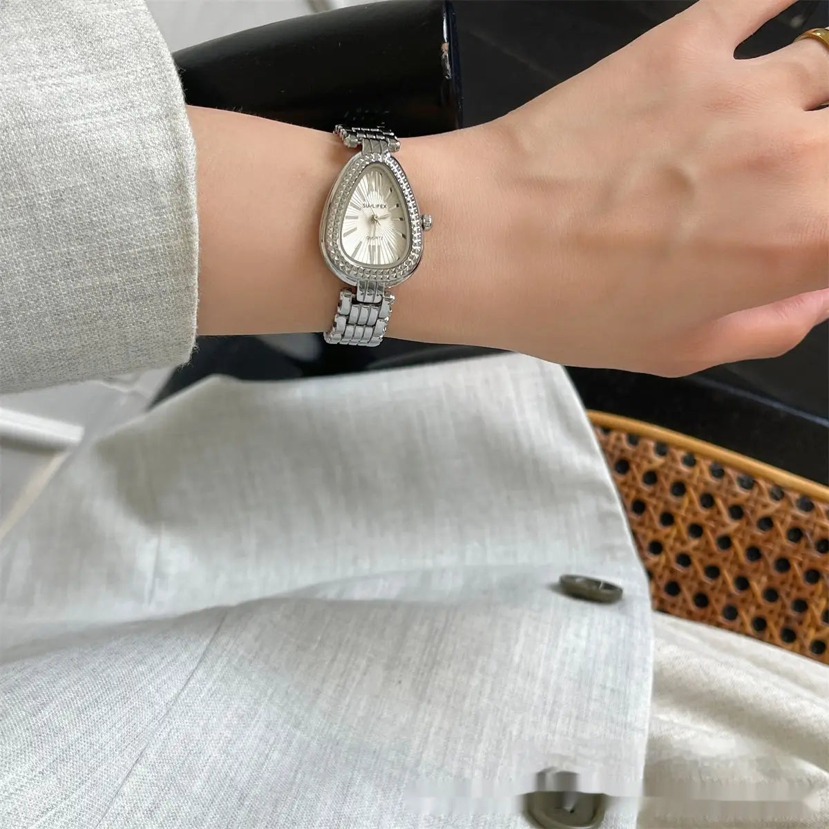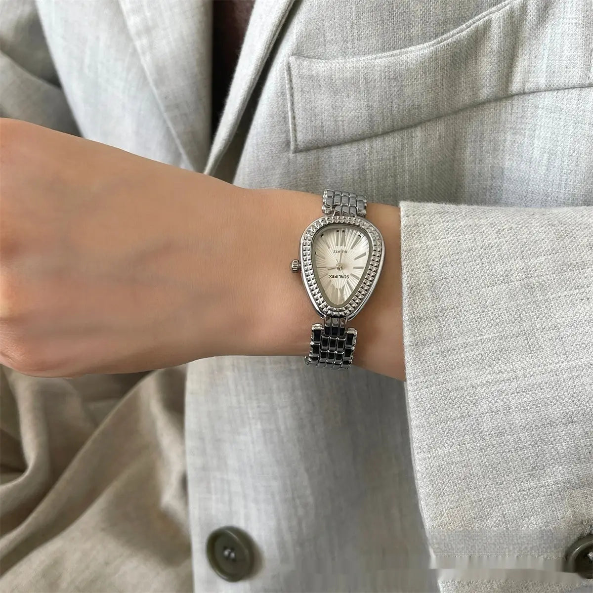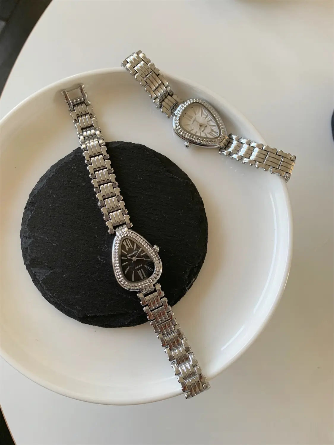 Golden Snake Head Gorgeous Chain Watch Women - Silver Streak Black Noodles - electronic accessories