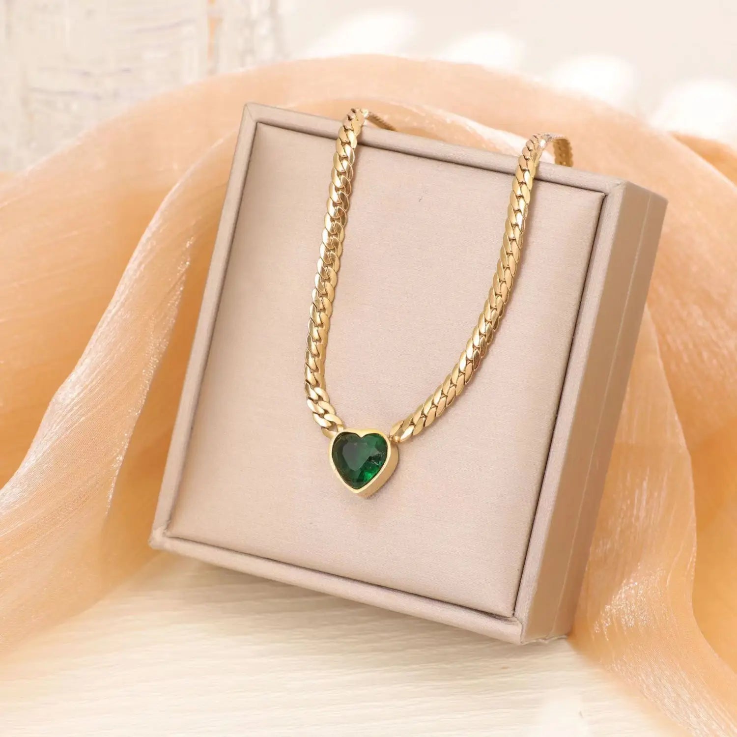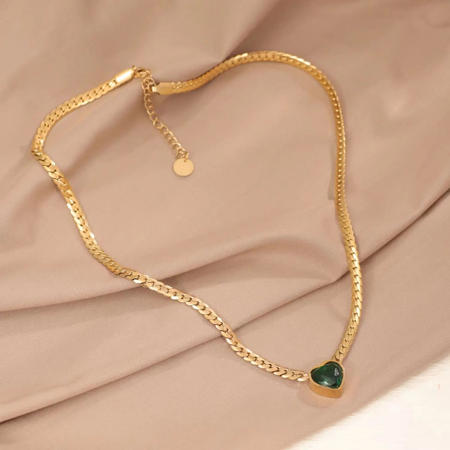 Grünes Herz Zirkon Persönlichkeit Cuban Link Kette Einfache Mode Halskette