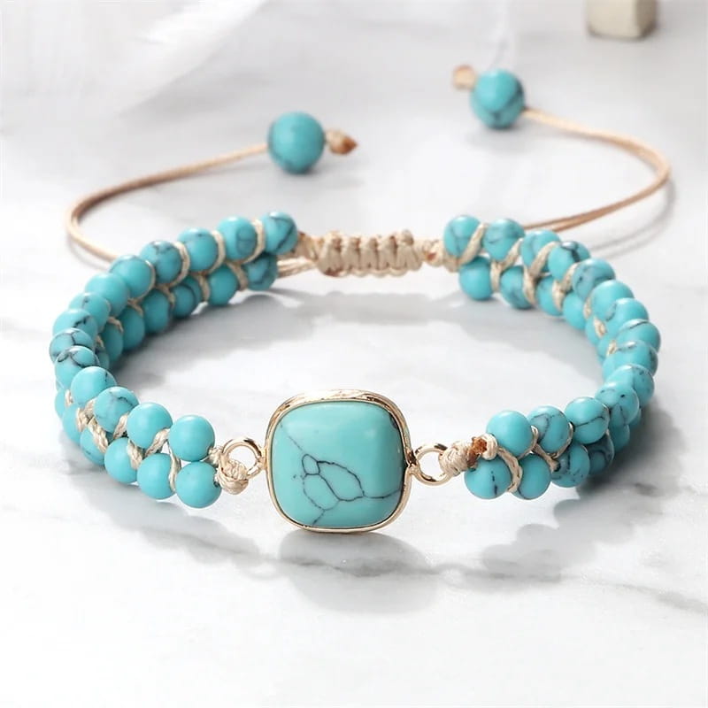 Hand-woven 4MM Natural Blue Turquoise Beads Irregular Bracelet - Square / 4mm - electronic accessories