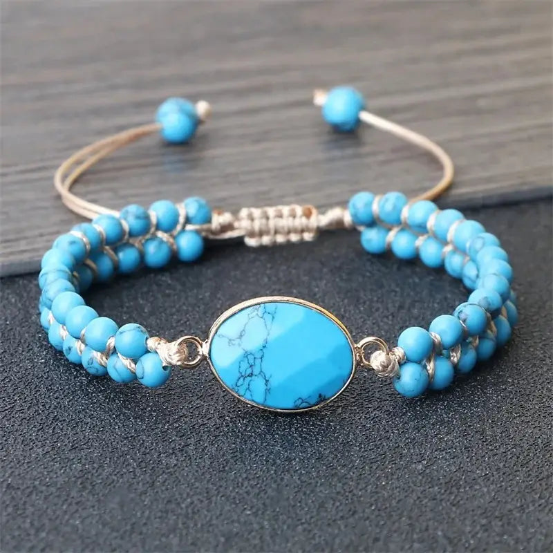 Hand-woven 4MM Natural Blue Turquoise Beads Irregular Bracelet - Oval / 4mm - electronic accessories