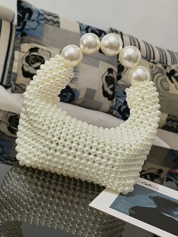 Handmade Pearl Handbags For Women - beige