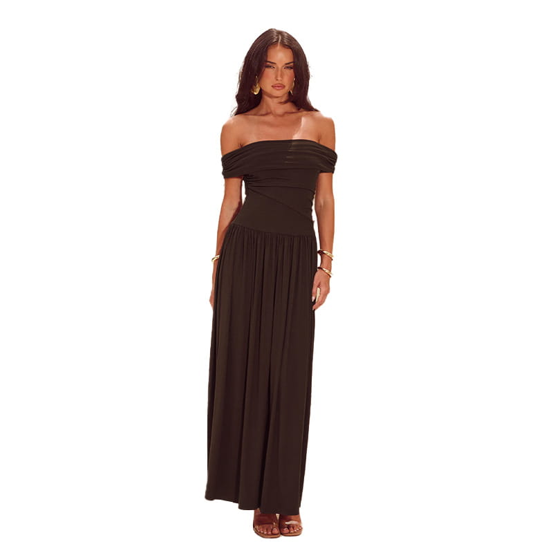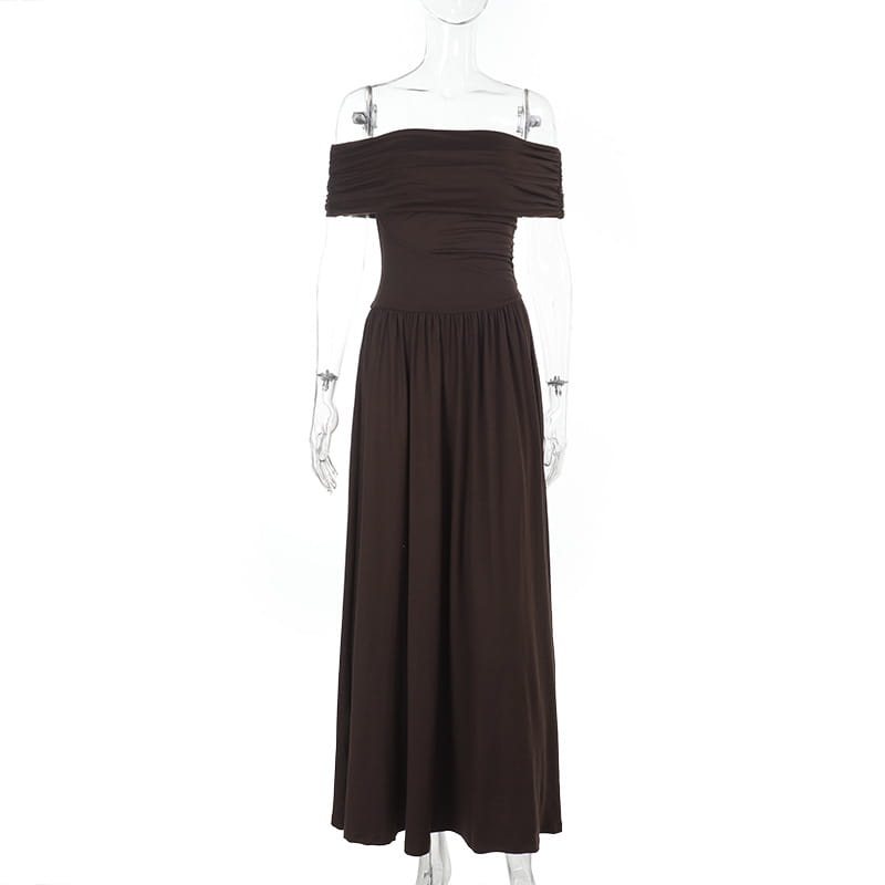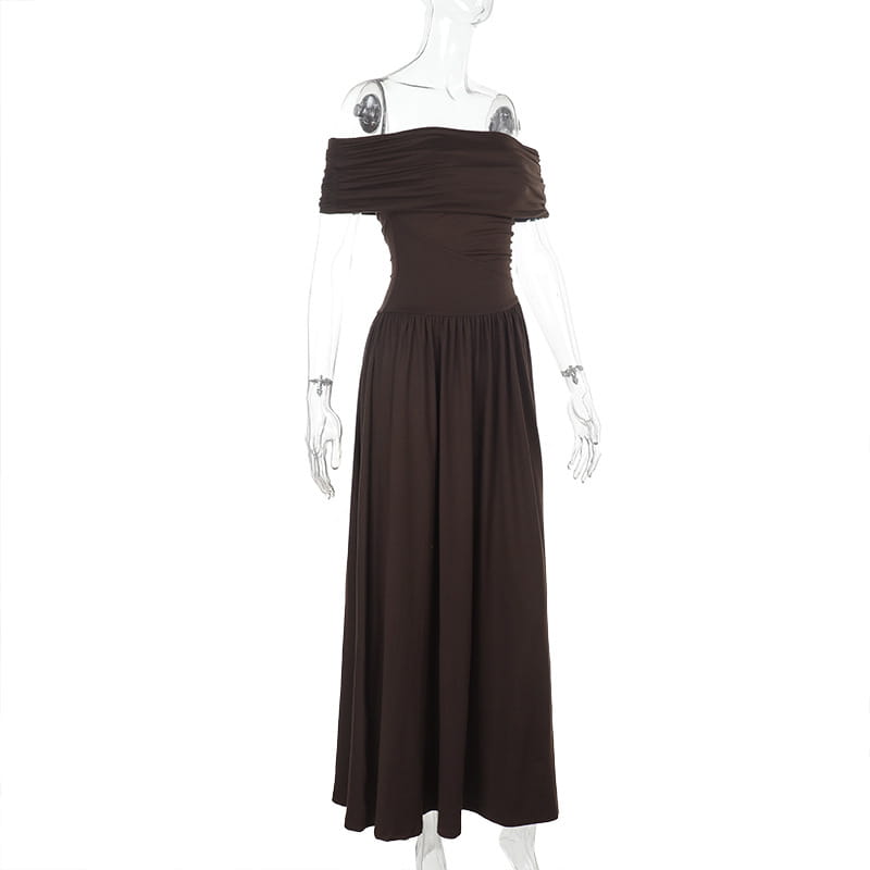 High Class Elegant Off-the-shoulder Tube Top Long Dress - Brown / L - electronic accessories