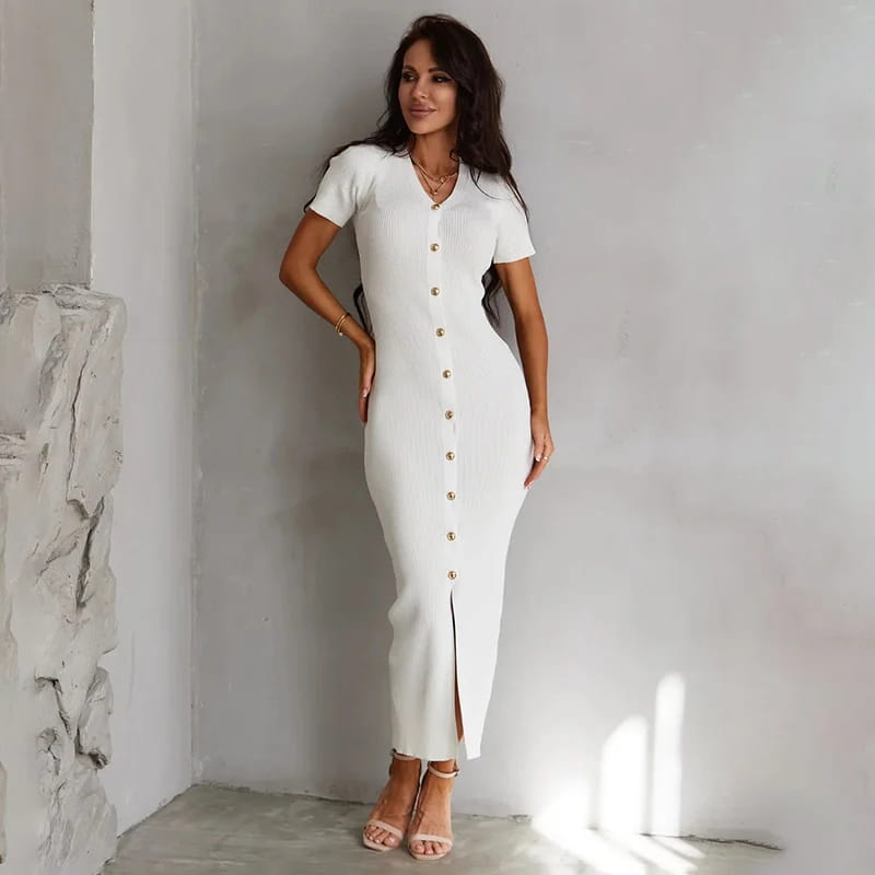 High Waist Knitted Dress For Women - Apricot- no belt / S