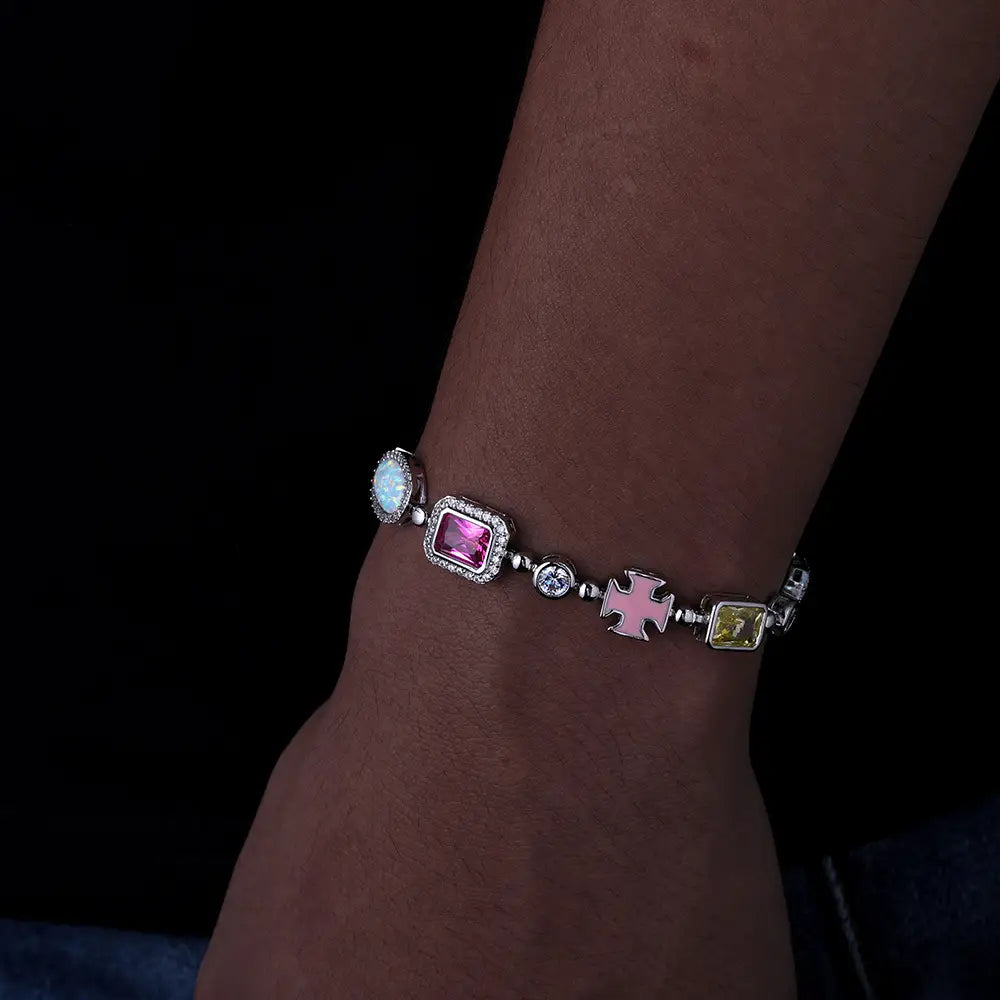 Hip Hop Color Gemstone Jewelry Bracelet Female Accessories - Platinum / 7 Inches - electronic accessories