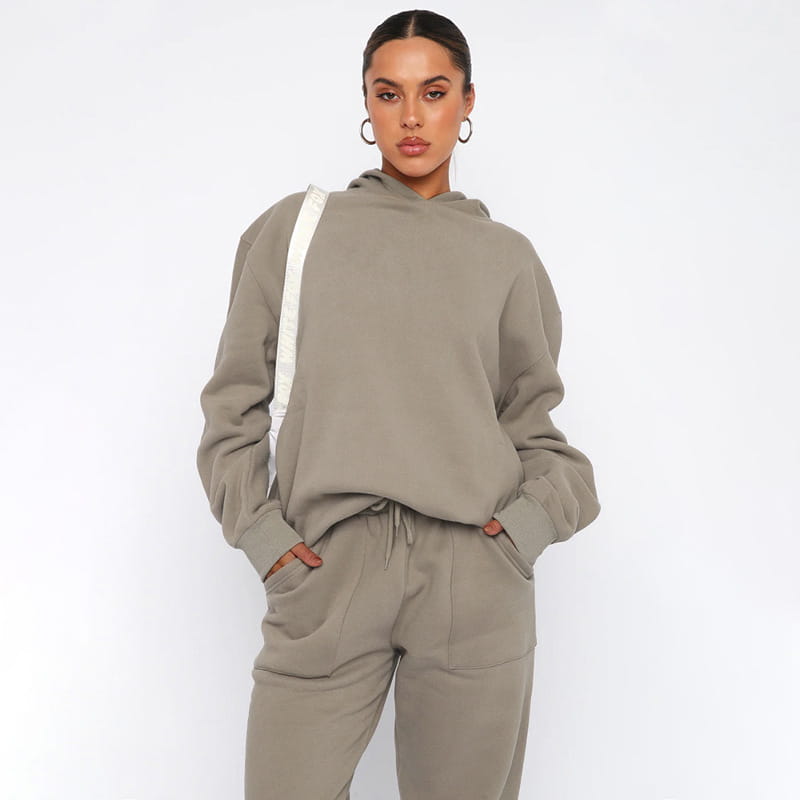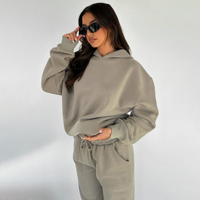 Hooded Long Sleeve Sweater Women’s Clothing Fashion Casual Trousers Suit - Dark Gray / L - Other