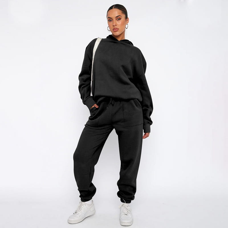 Hooded Long Sleeve Sweater Women’s Clothing Fashion Casual Trousers Suit - Black / L - Other