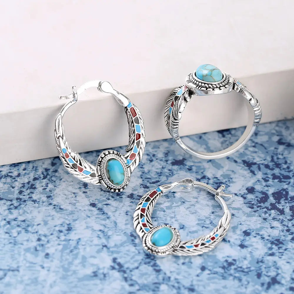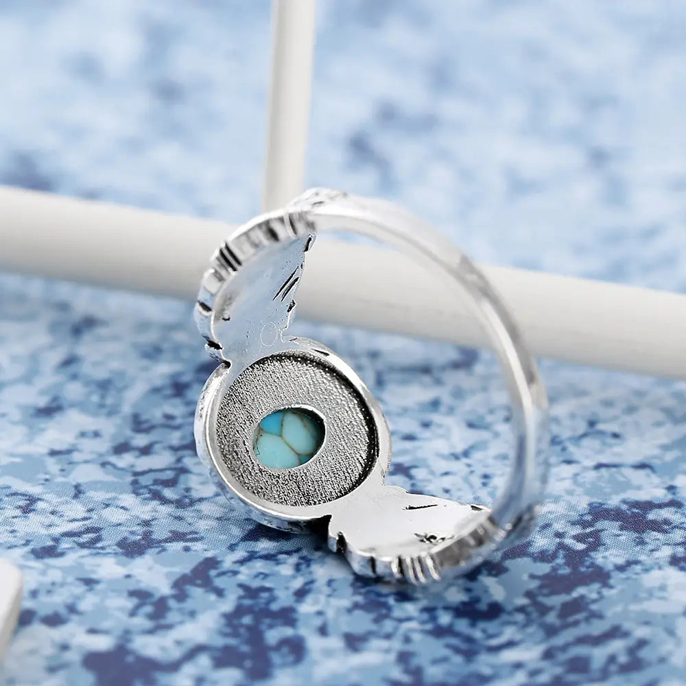 Inlaid Turquoise Eagle Feather Ring - electronic accessories