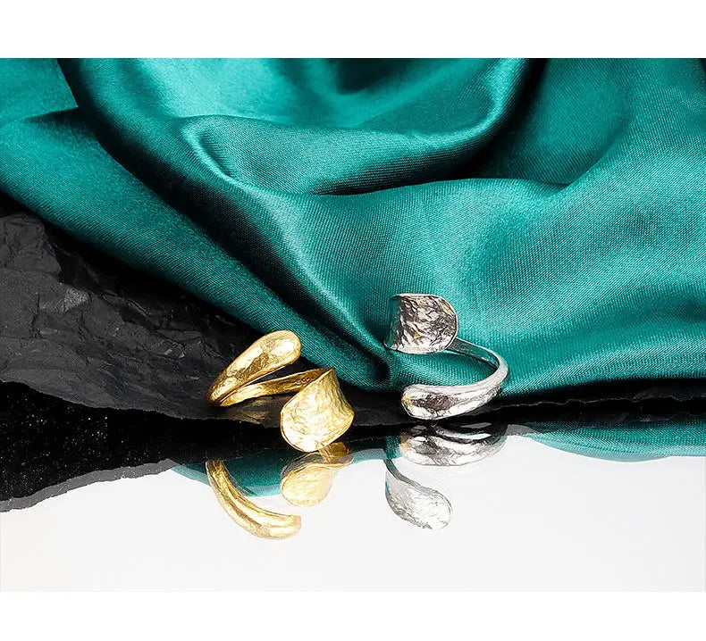 Unregelmäßiger konkaver und konvexer Wassertropfen-Gold- und Silberring