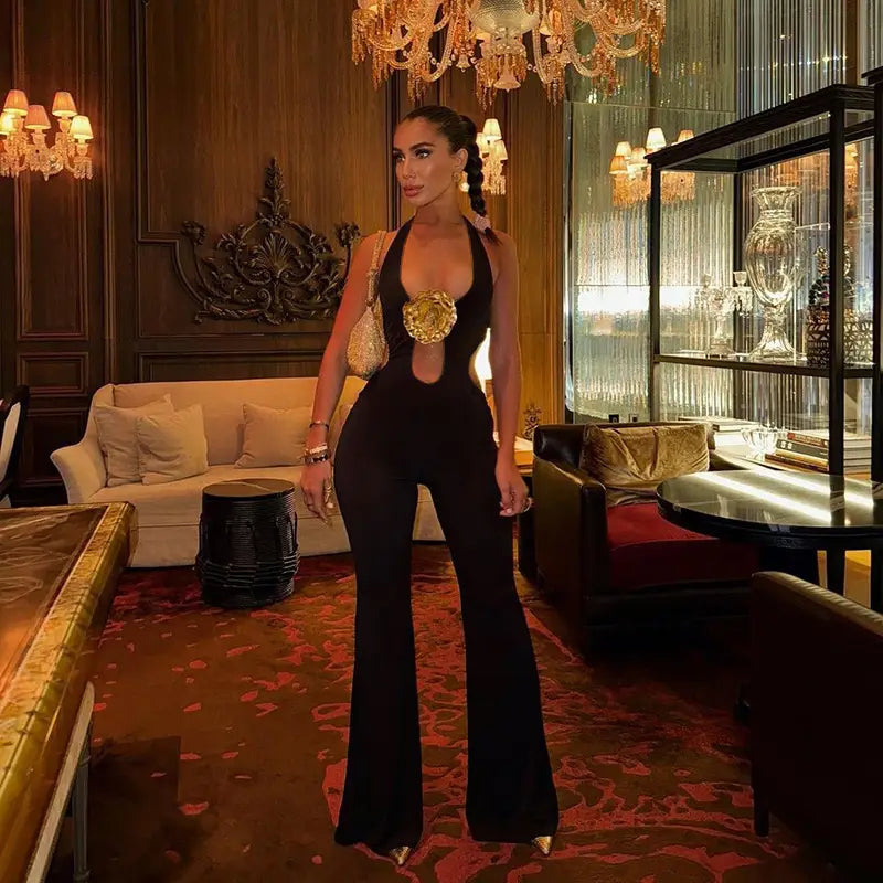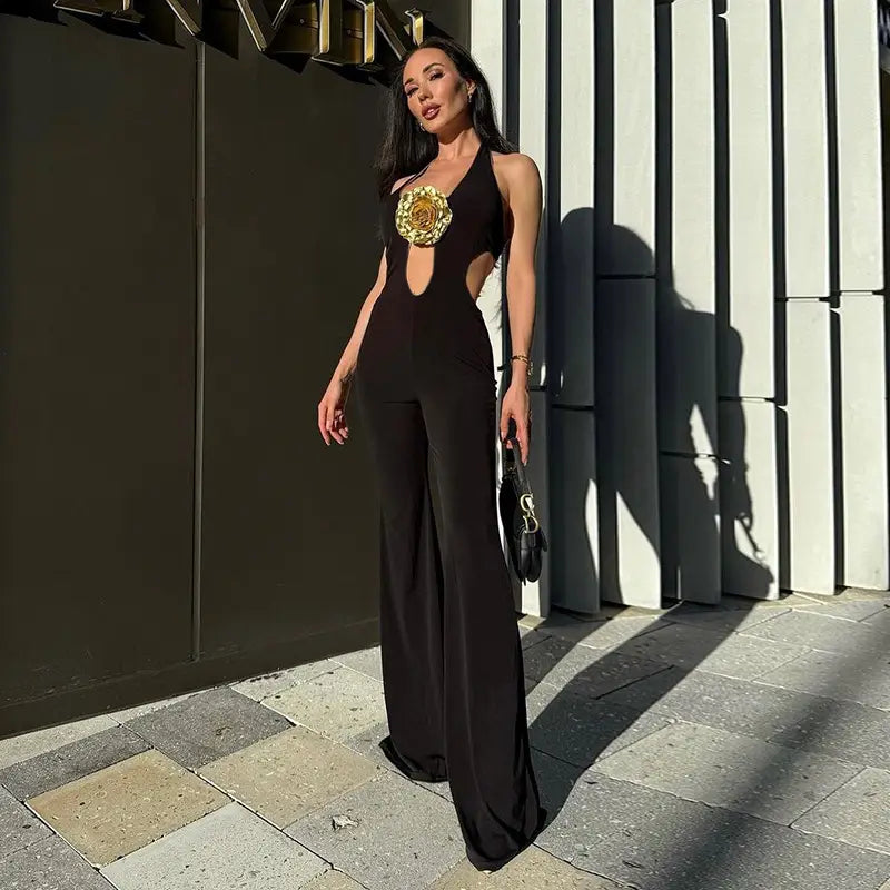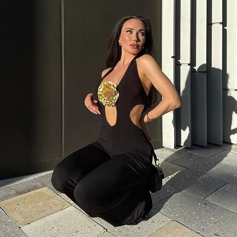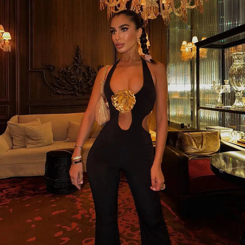 Lace-up Golden Three-dimensional Flower One-piece Trousers - electronic accessories