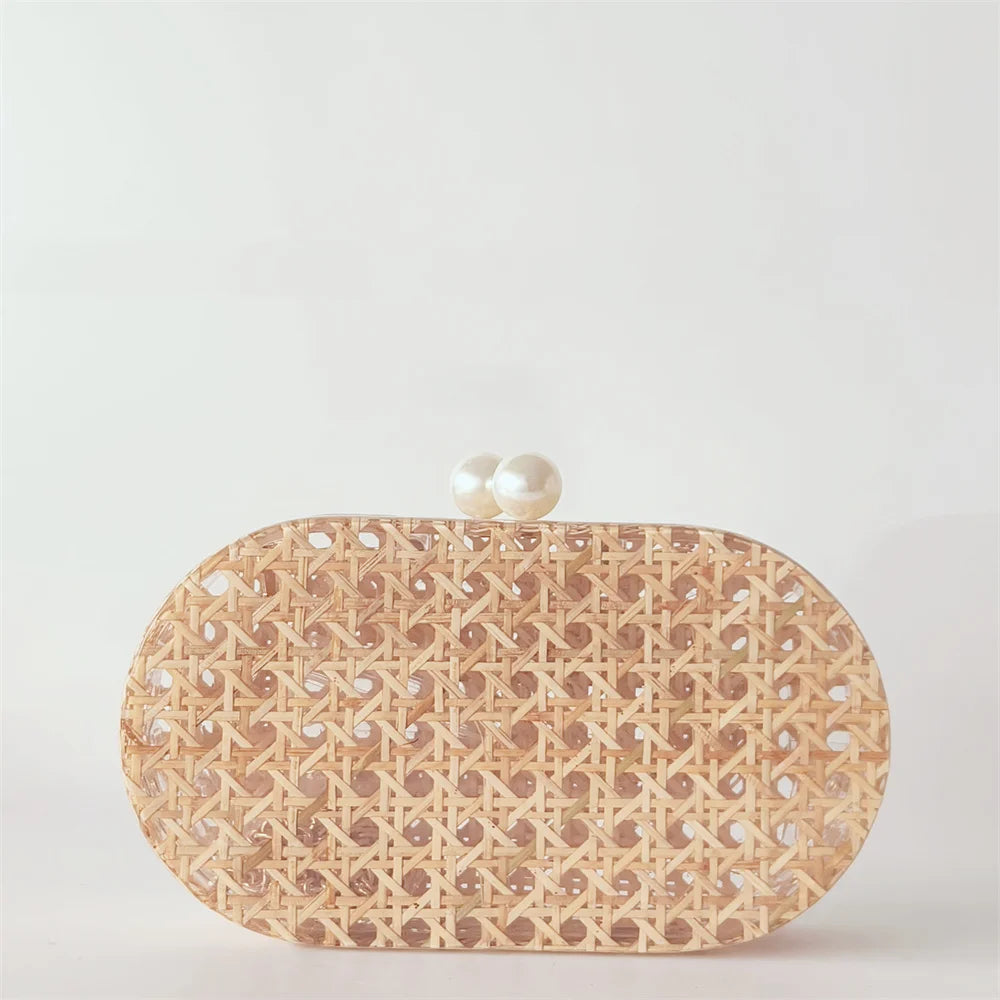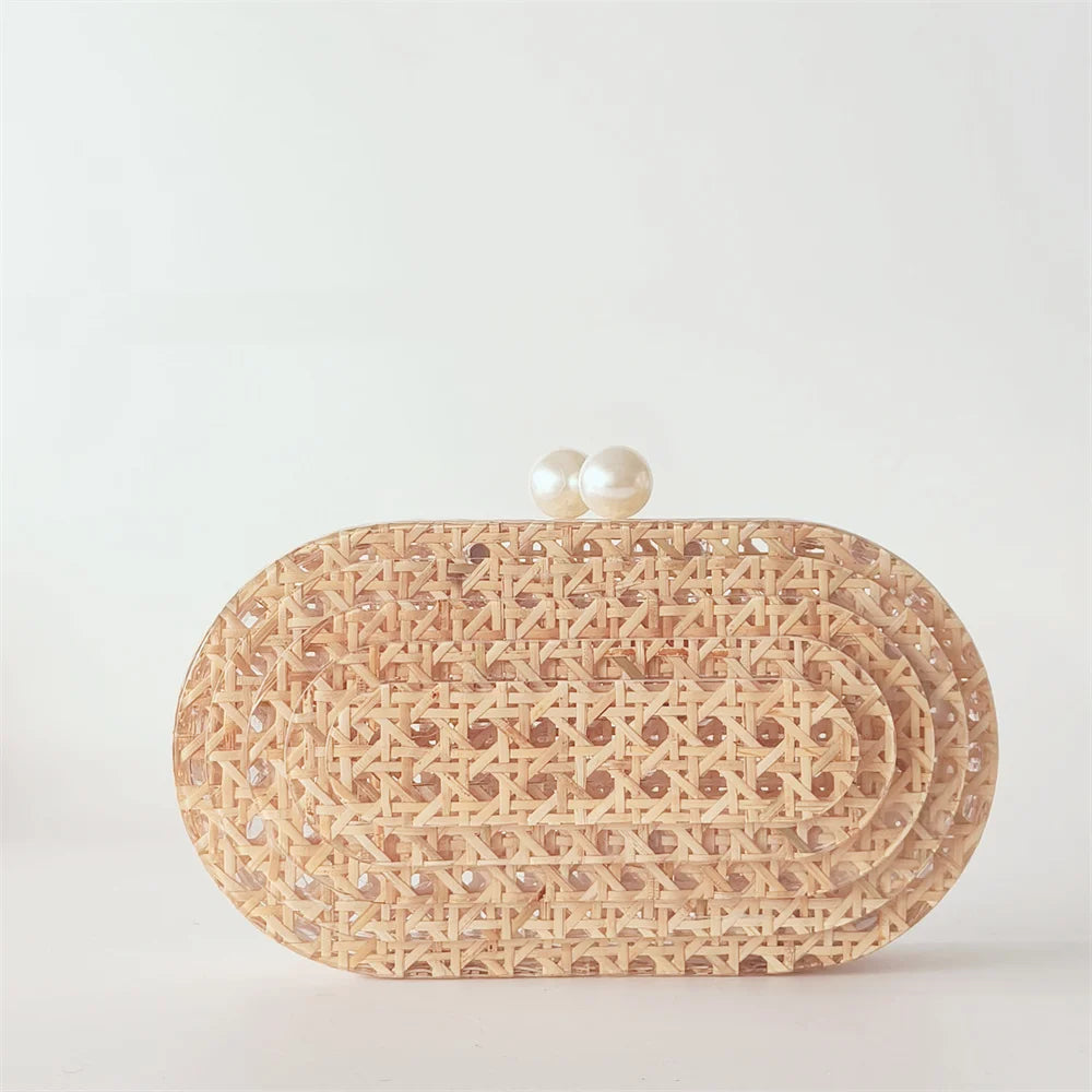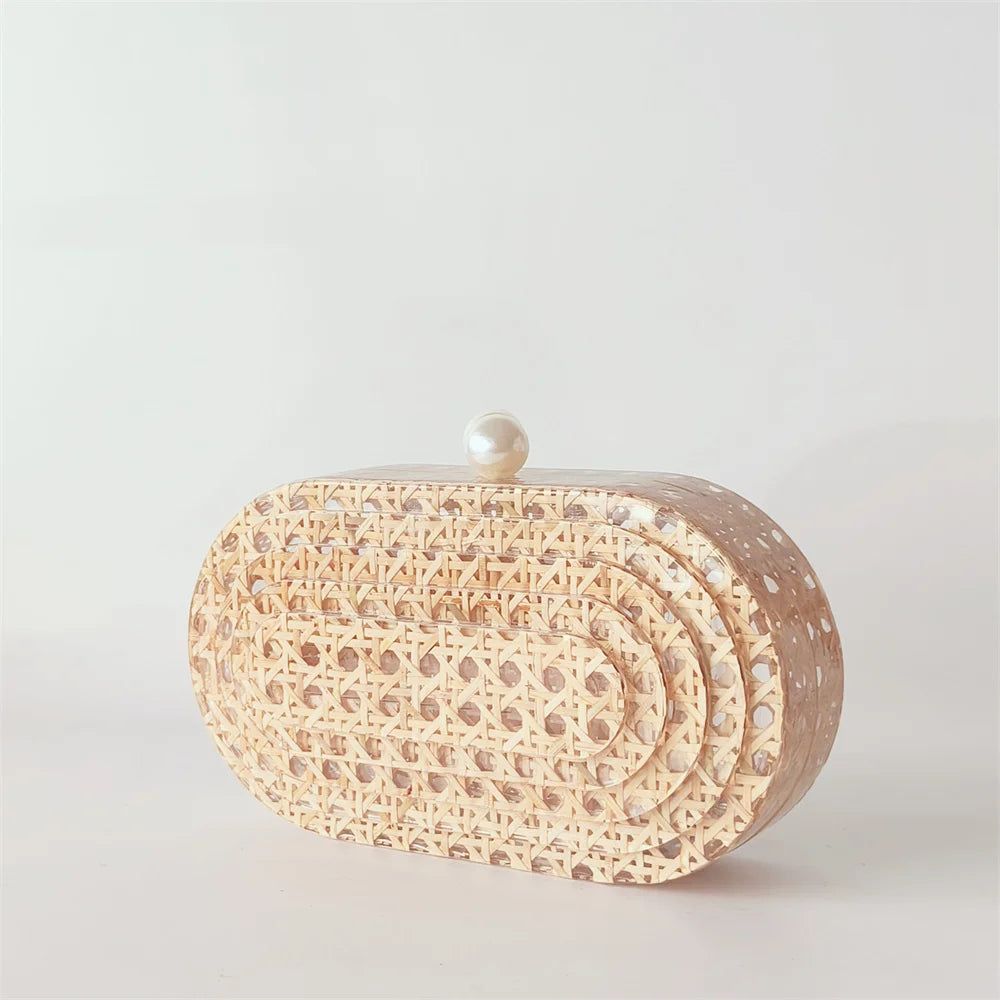 Lady Women Rattan Clutch Acrylic Egg Cane Bag